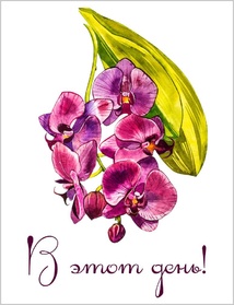 D010 Акварельная открытка 8,5х6,5 см - Орхидея