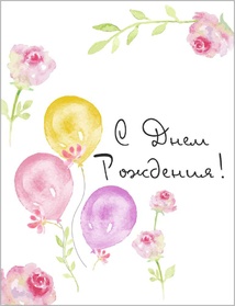 D018 Акварельная открытка 8,5х6,5 см - Шарики на день рождения