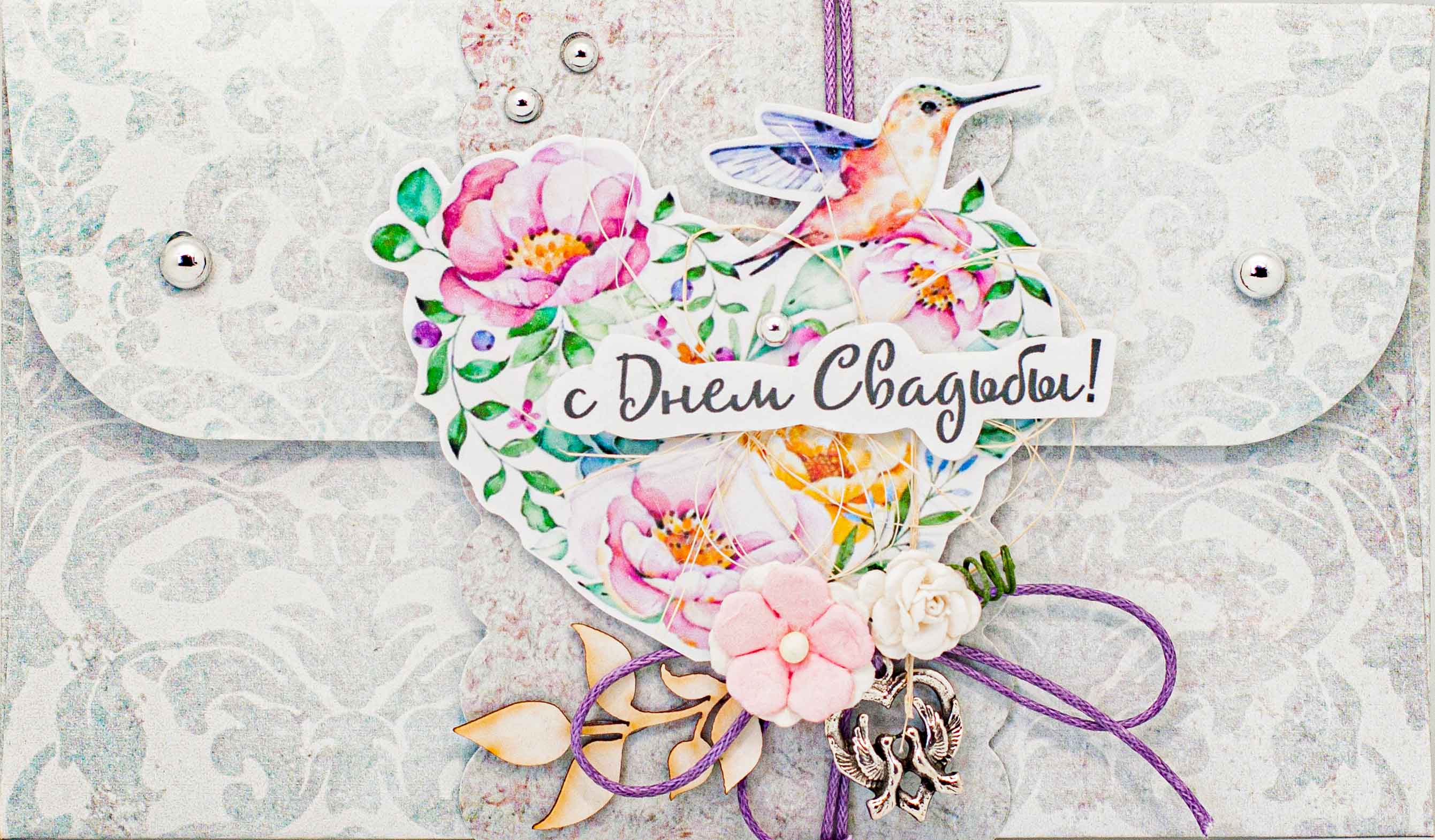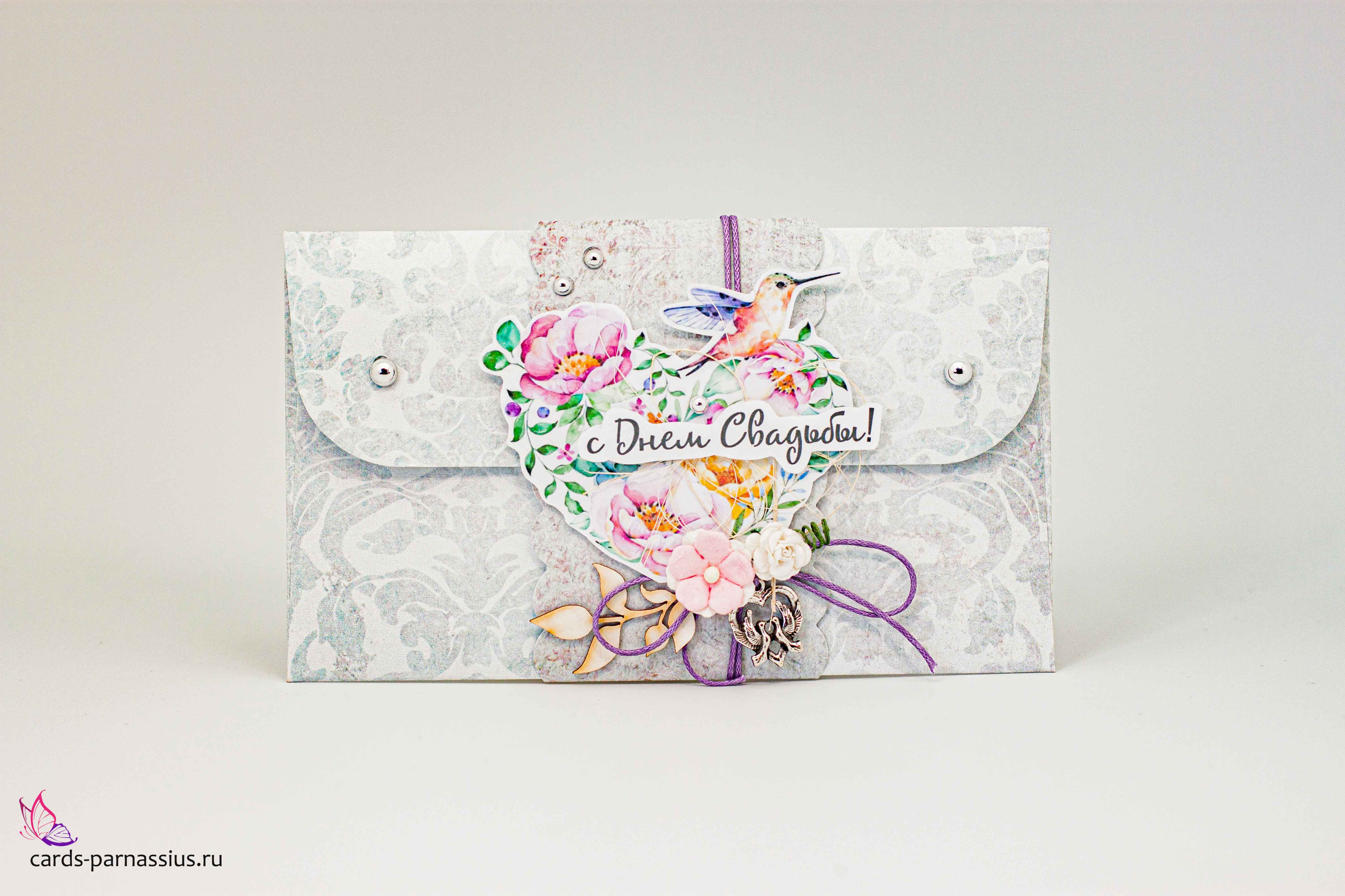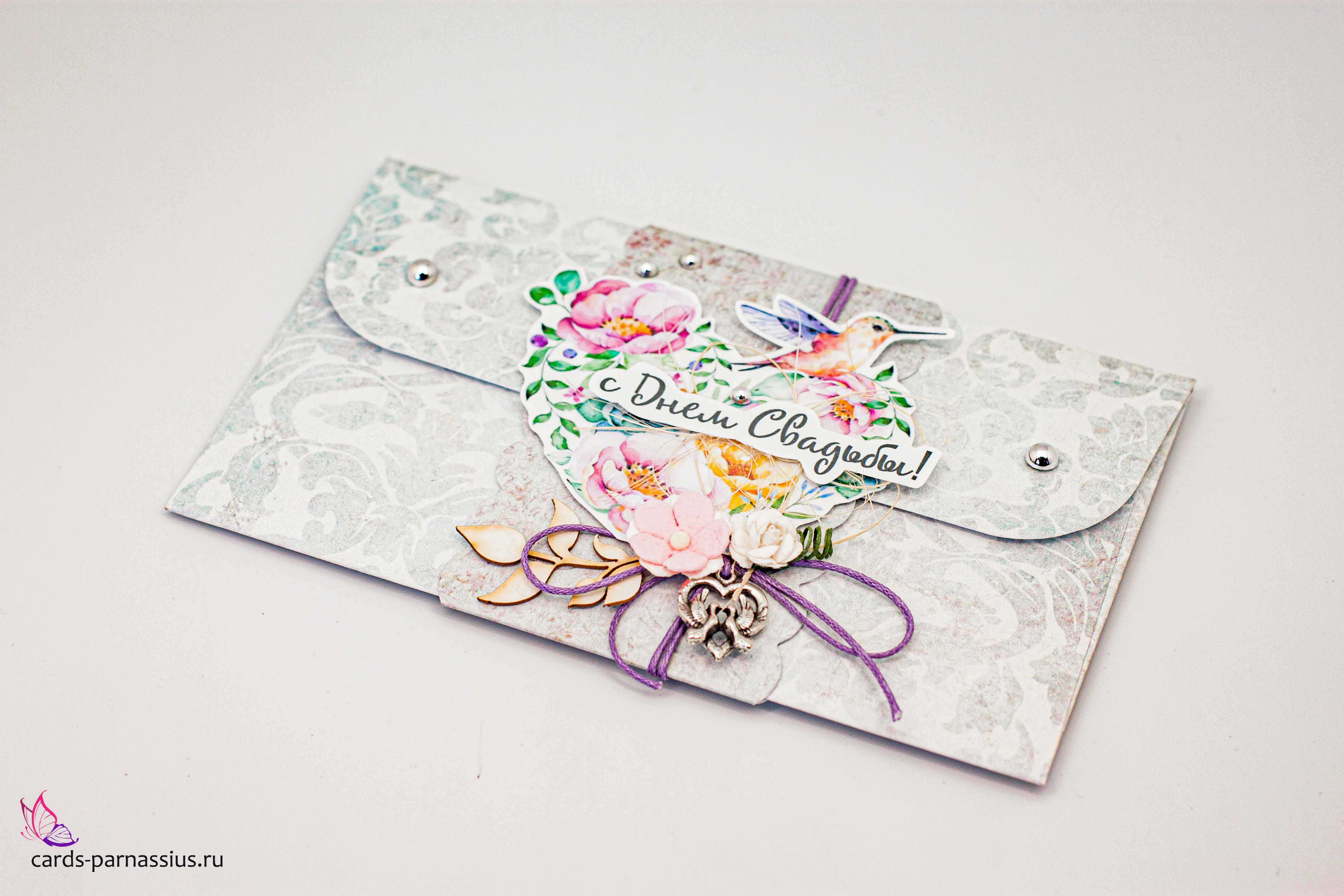 К342 Подарочный конверт ручной работы - Свадебный букет
