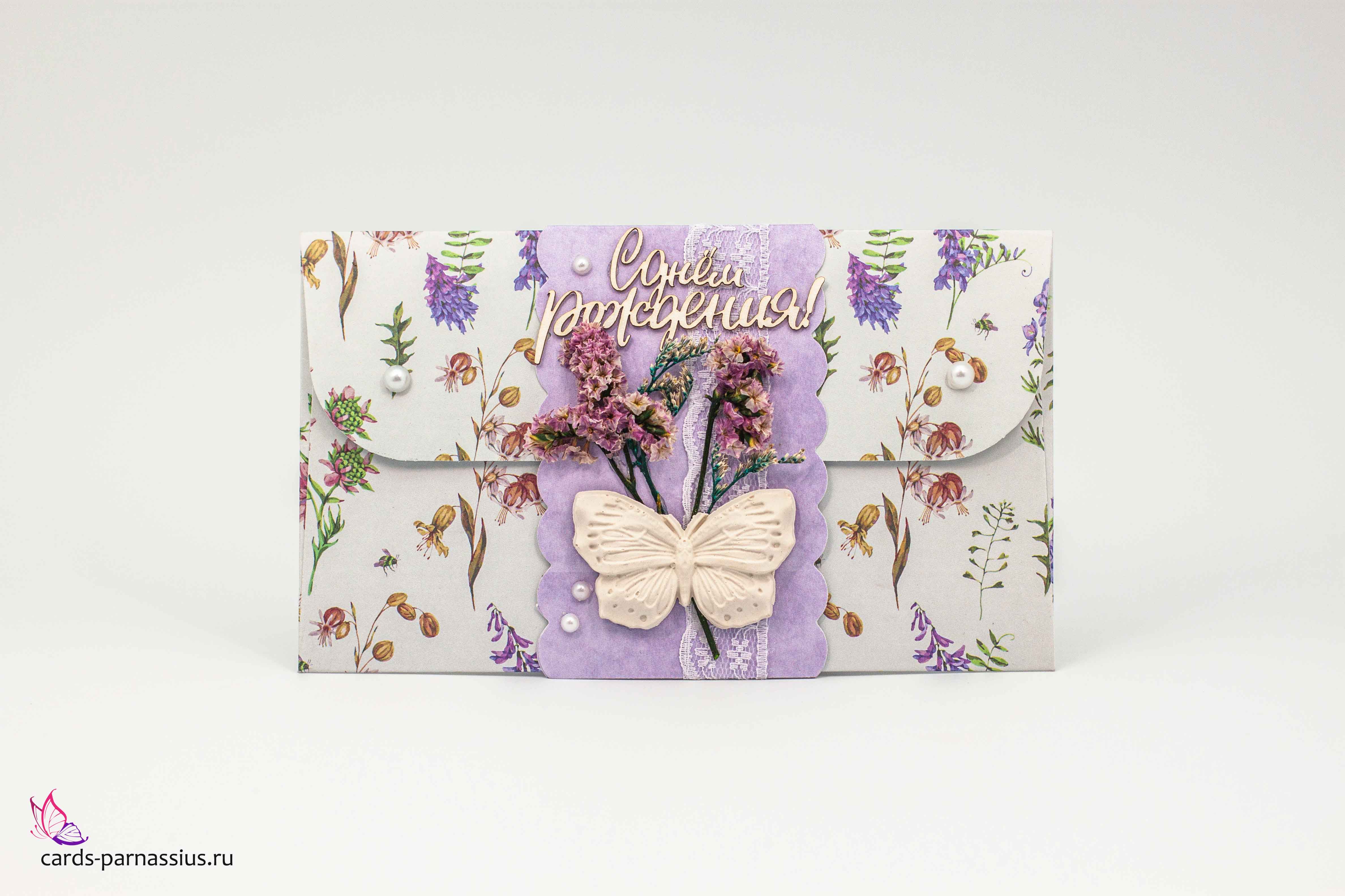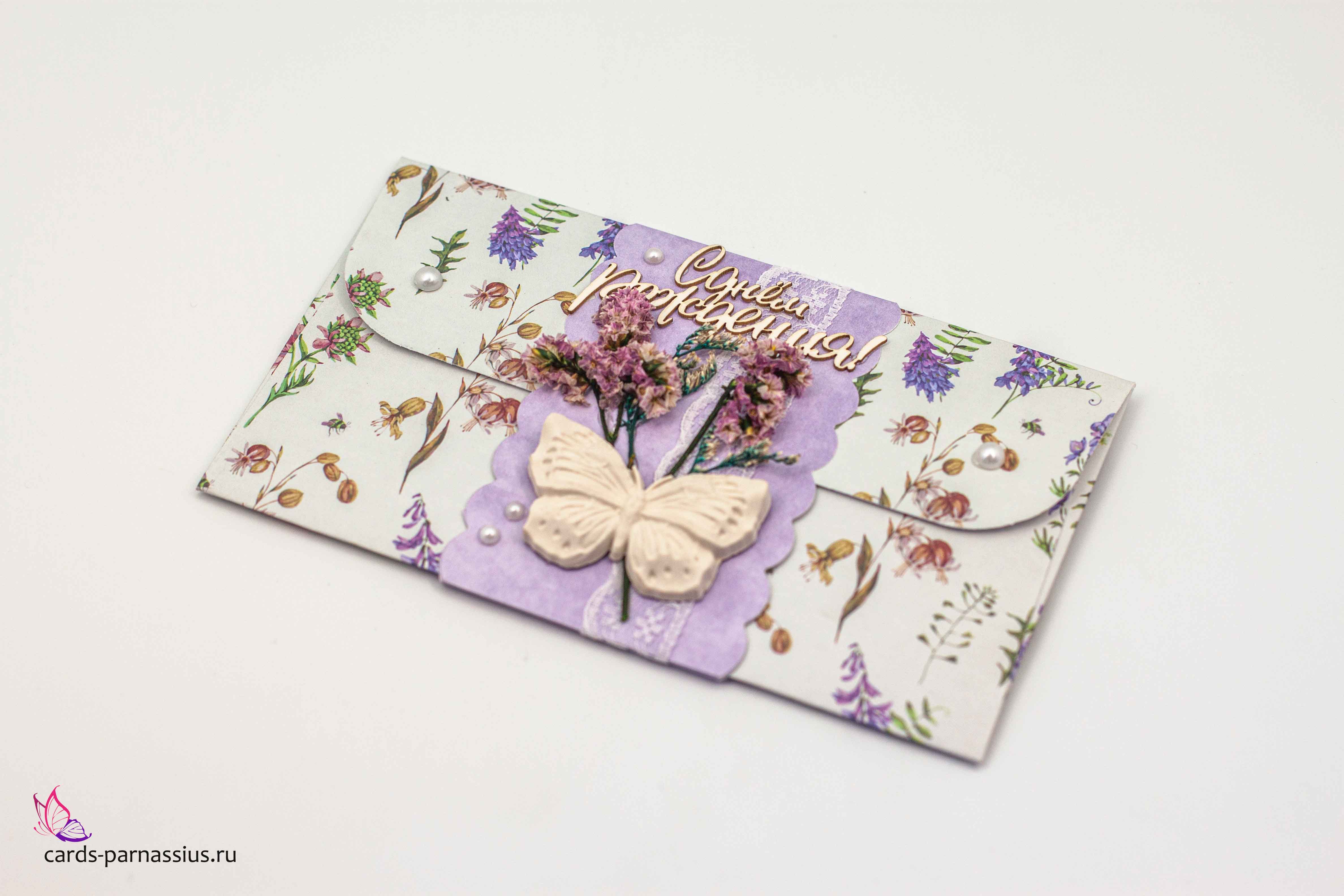 К383 Подарочный конверт ручной работы - Цветочные луга