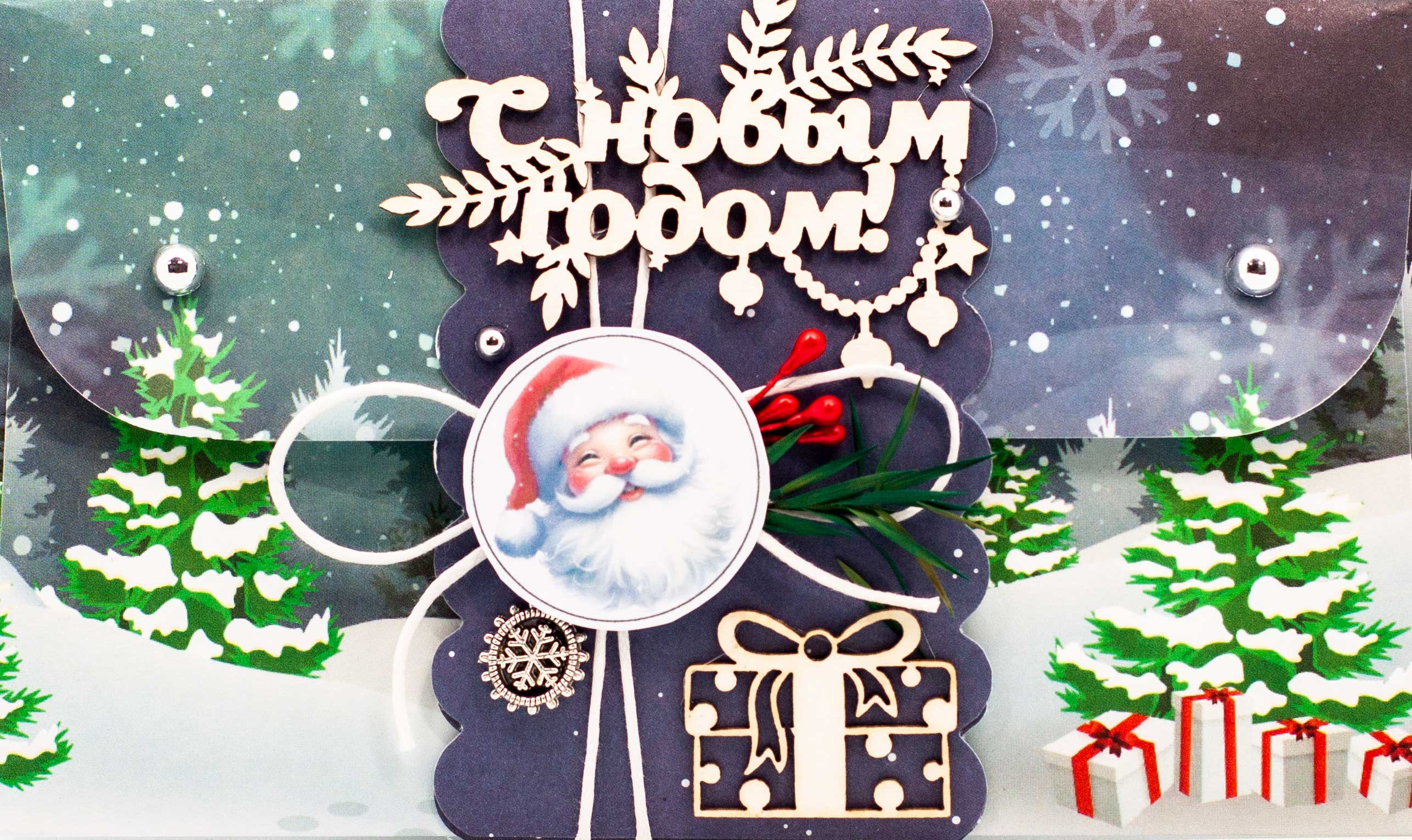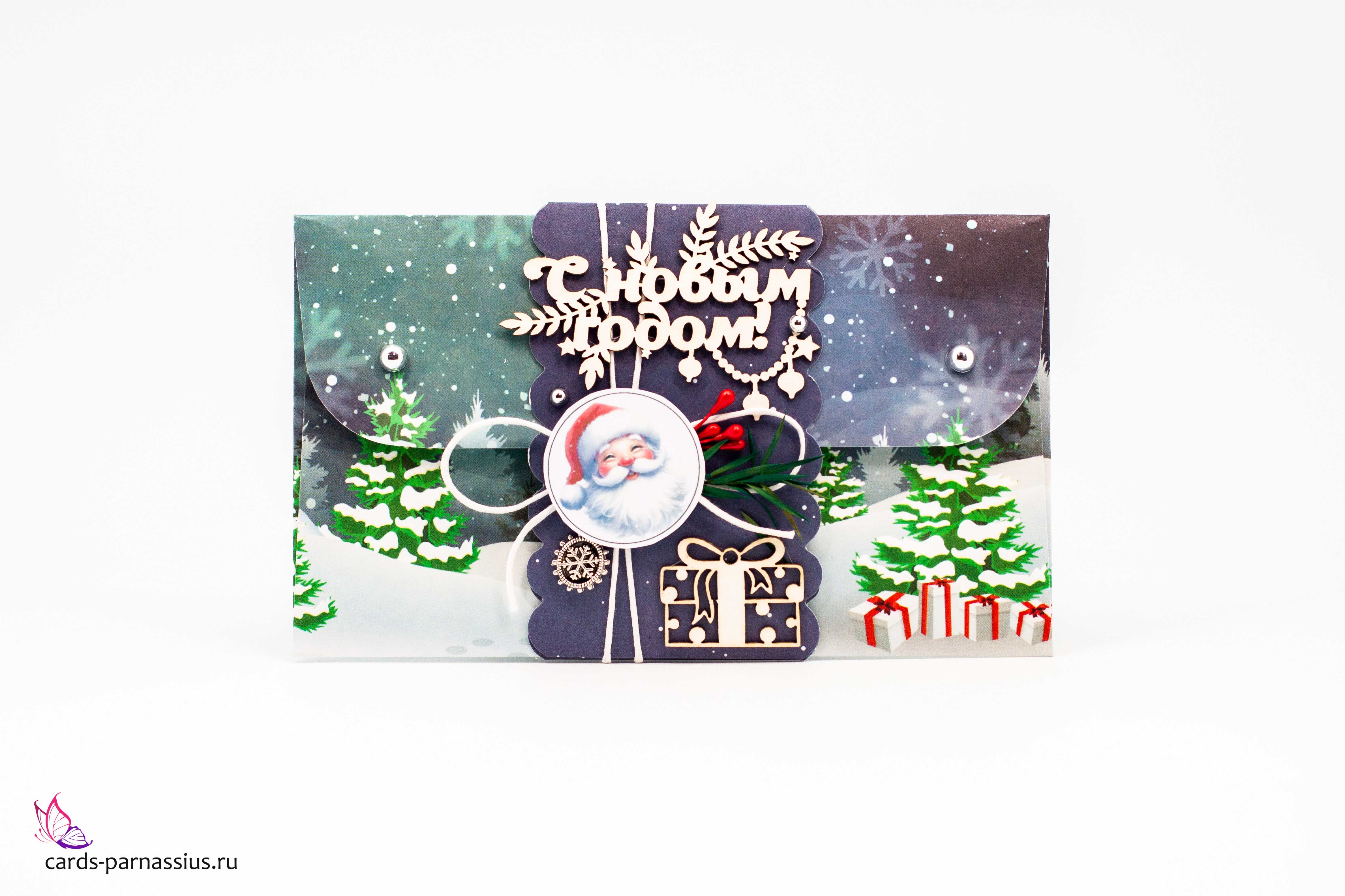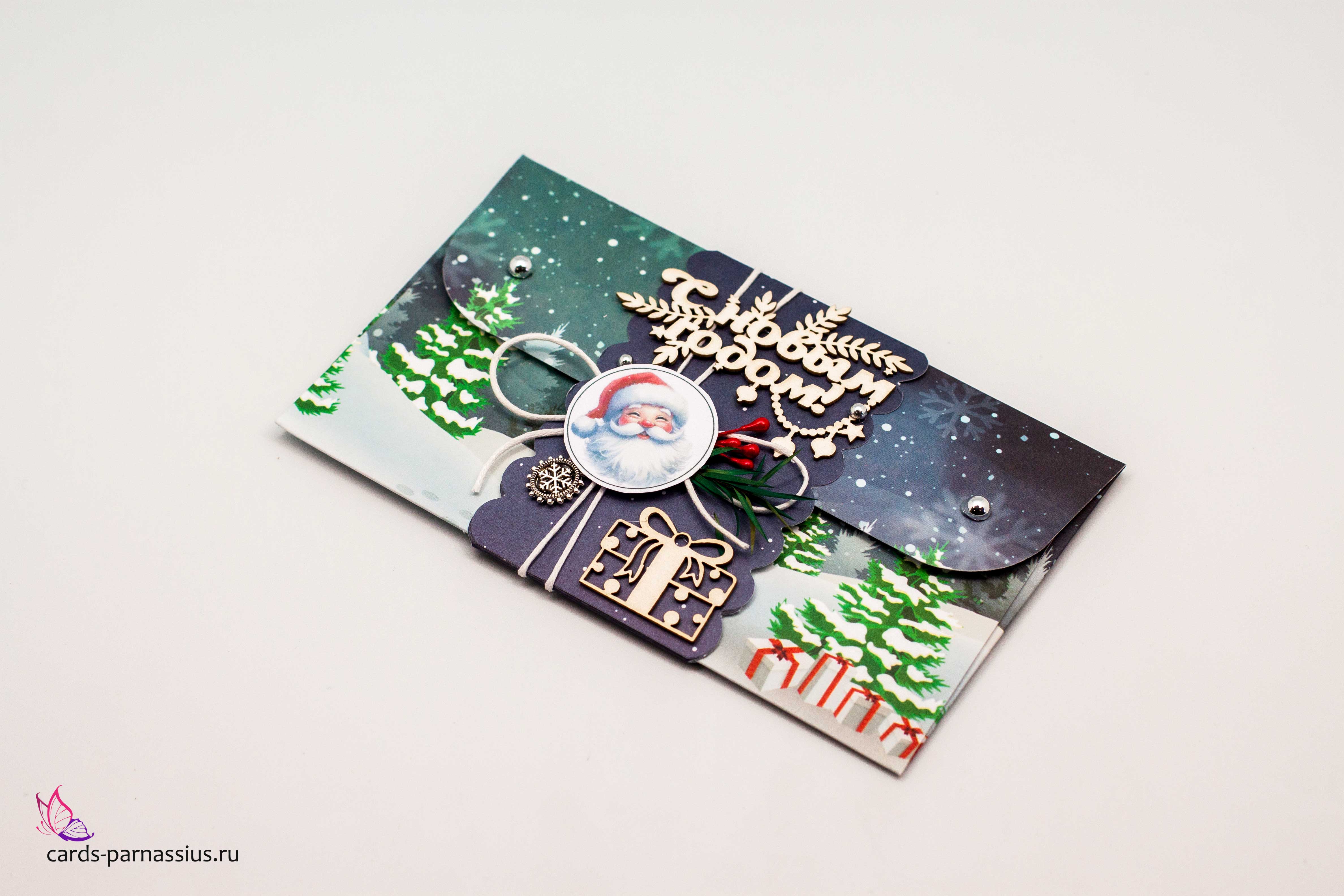 К453 Подарочный конверт ручной работы - Посылка от деда мороза