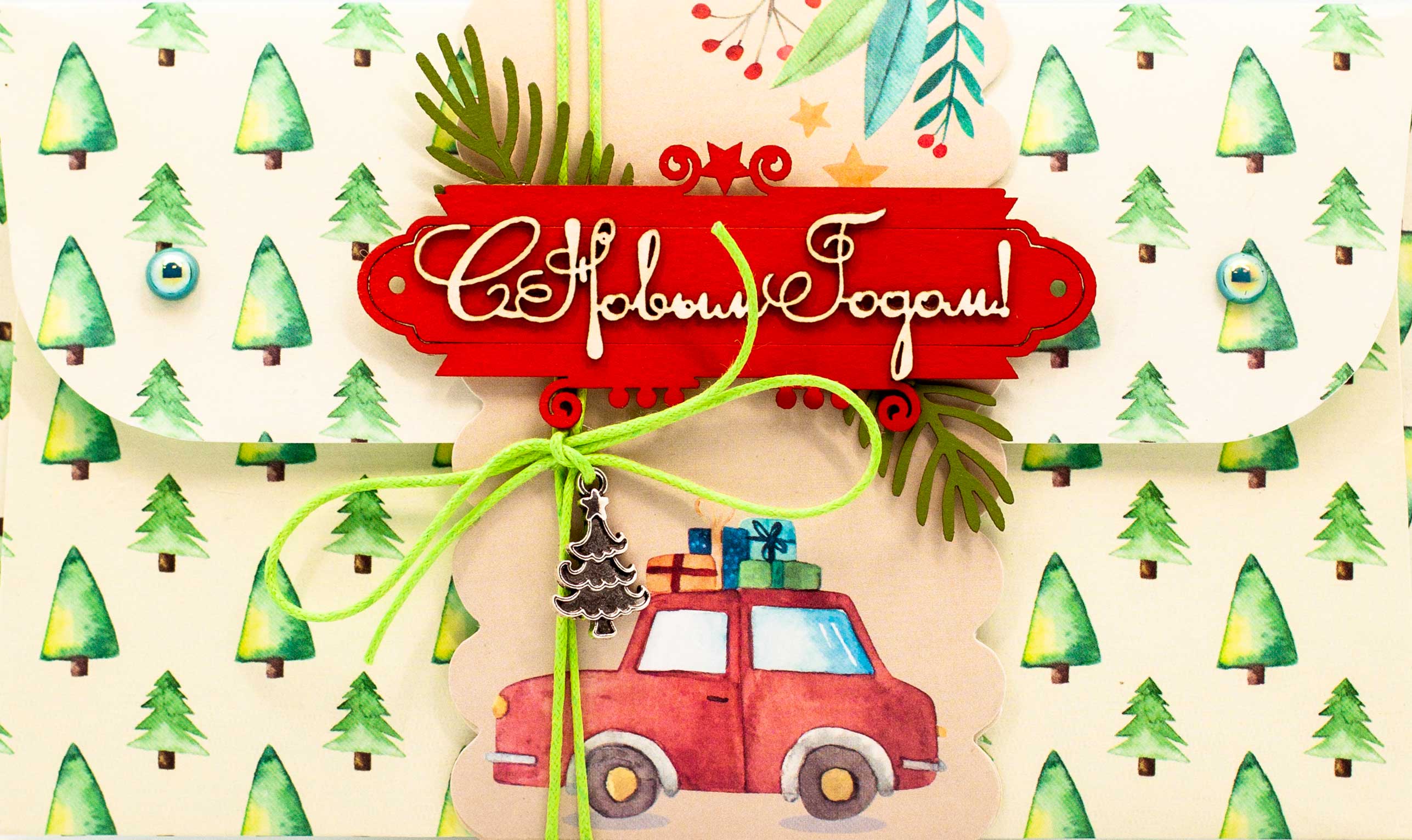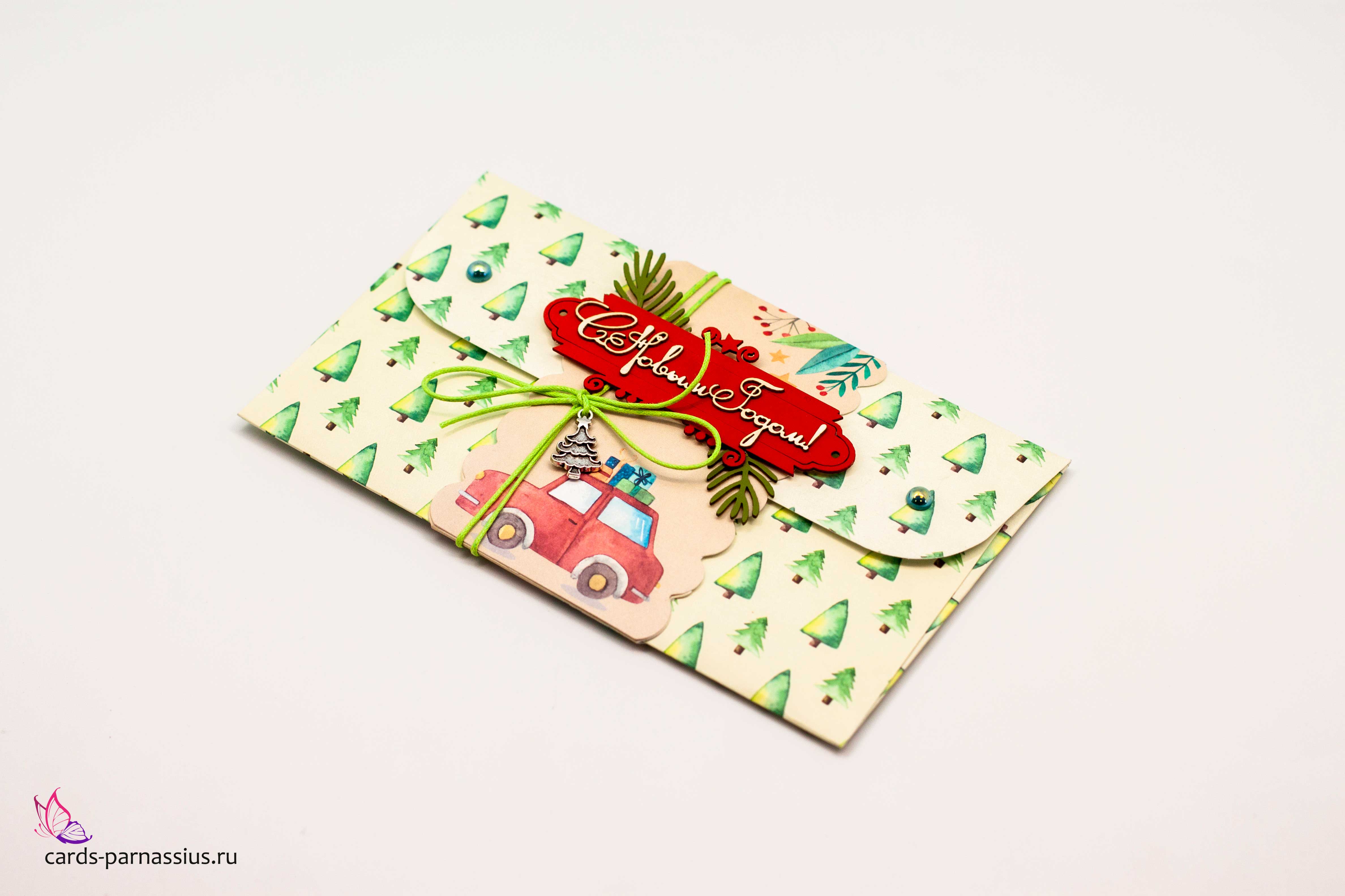 К455 Подарочный конверт ручной работы - Машина подарков