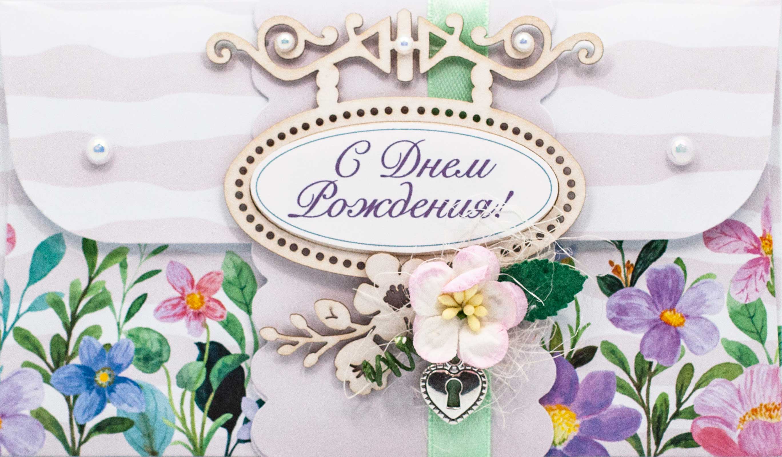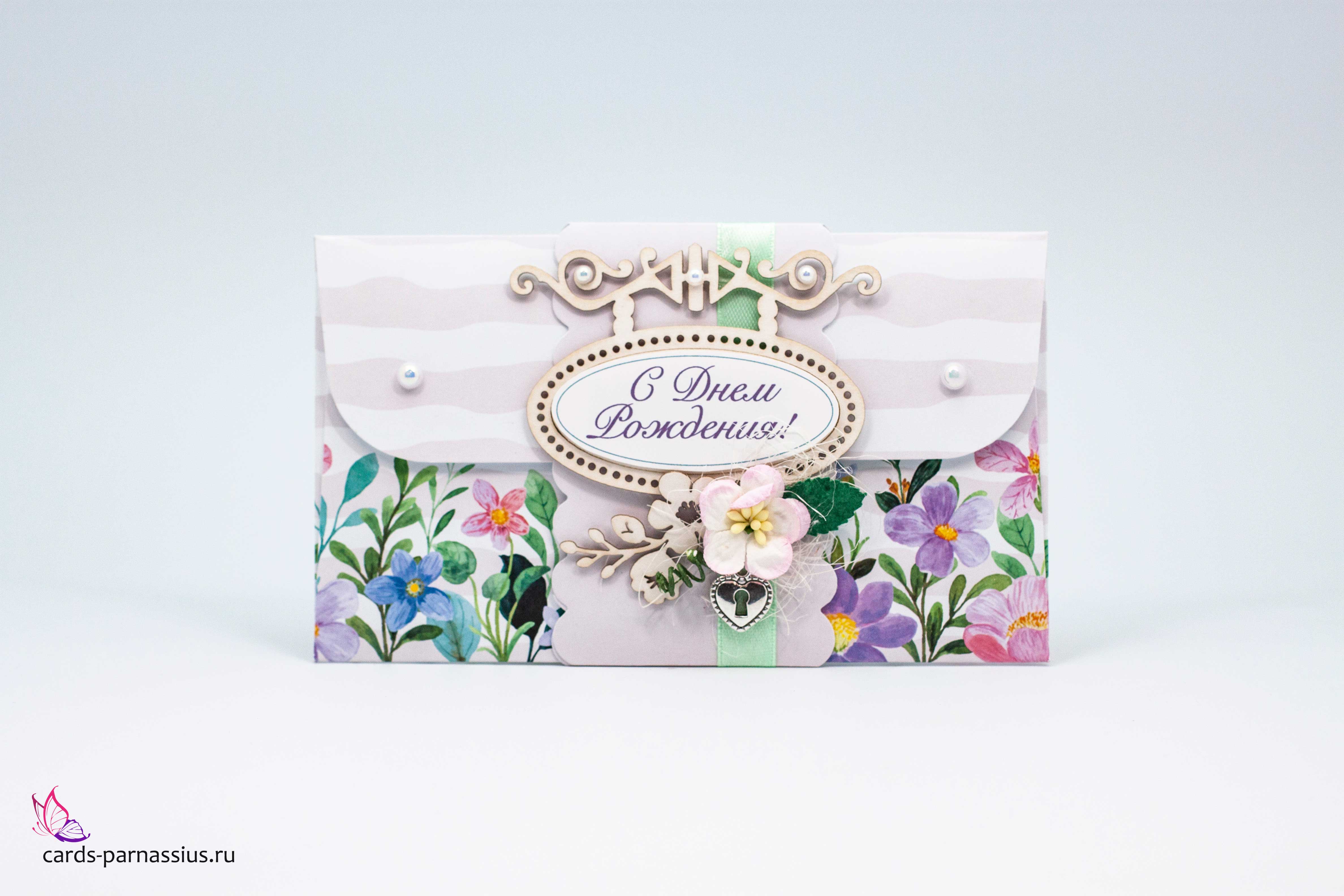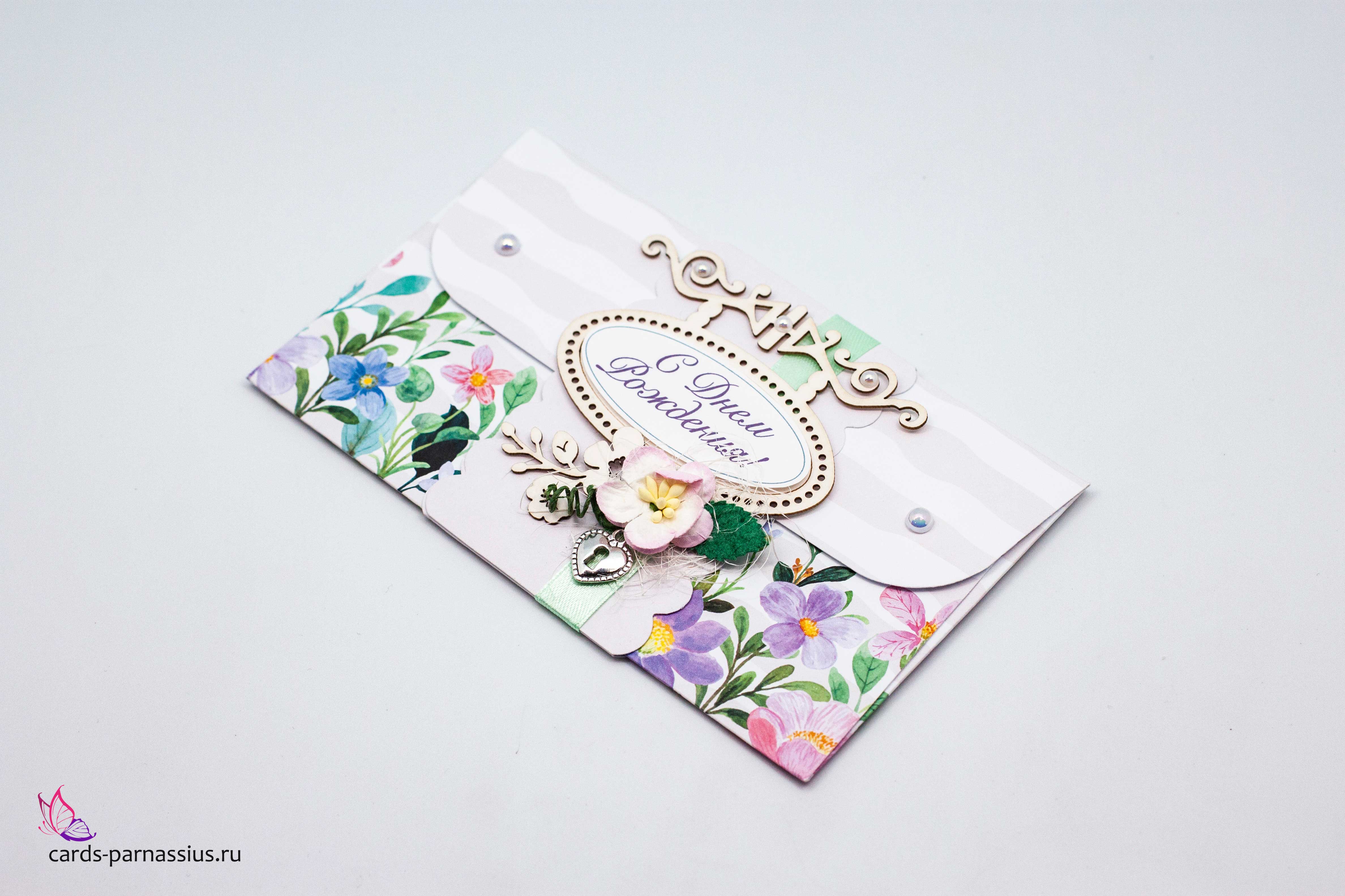 К463 Подарочный конверт ручной работы - Цветочный сад