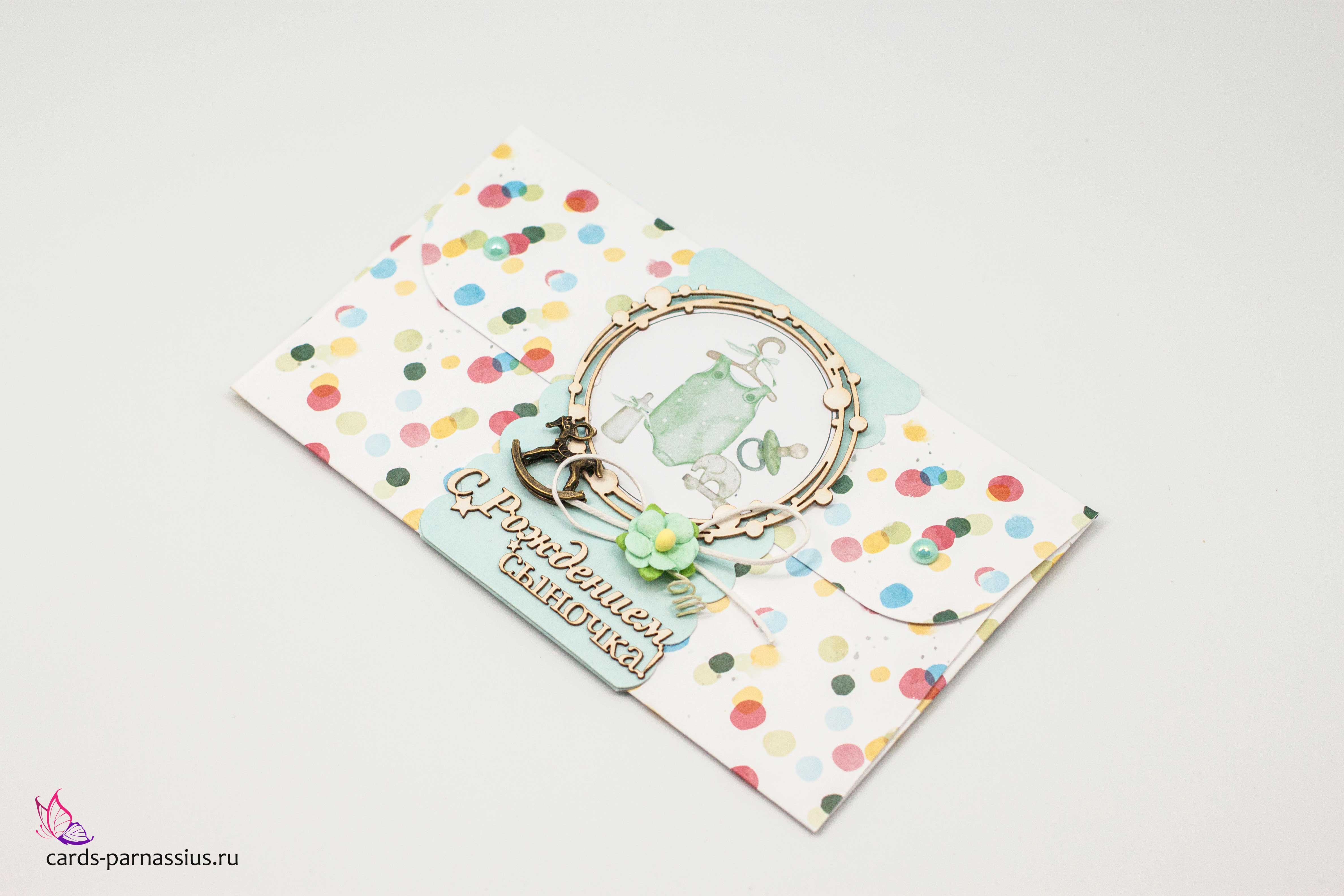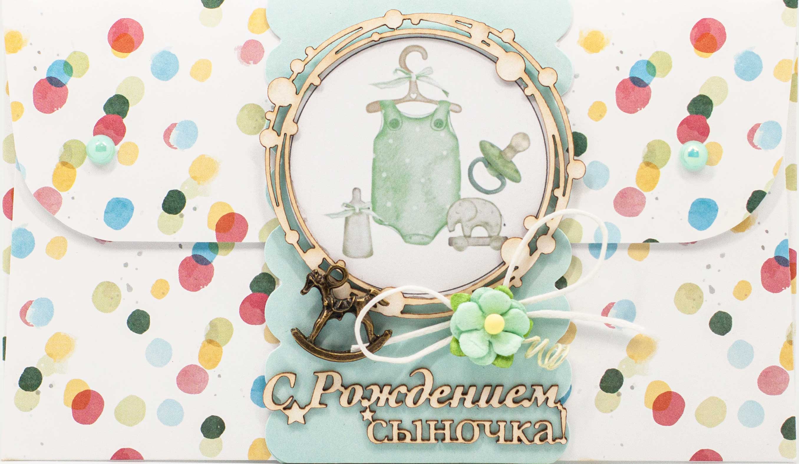 К477 Подарочный конверт ручной работы - Погремушки для малыша