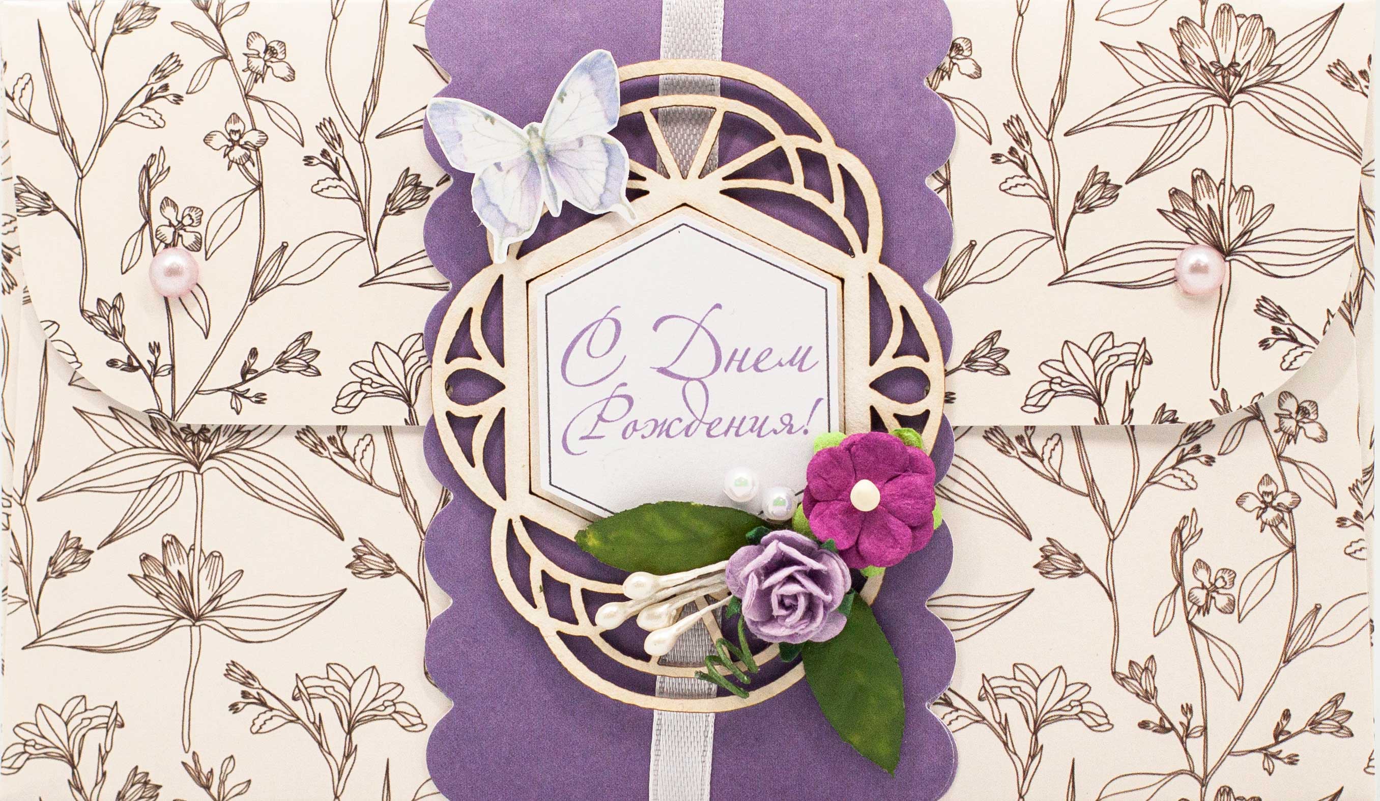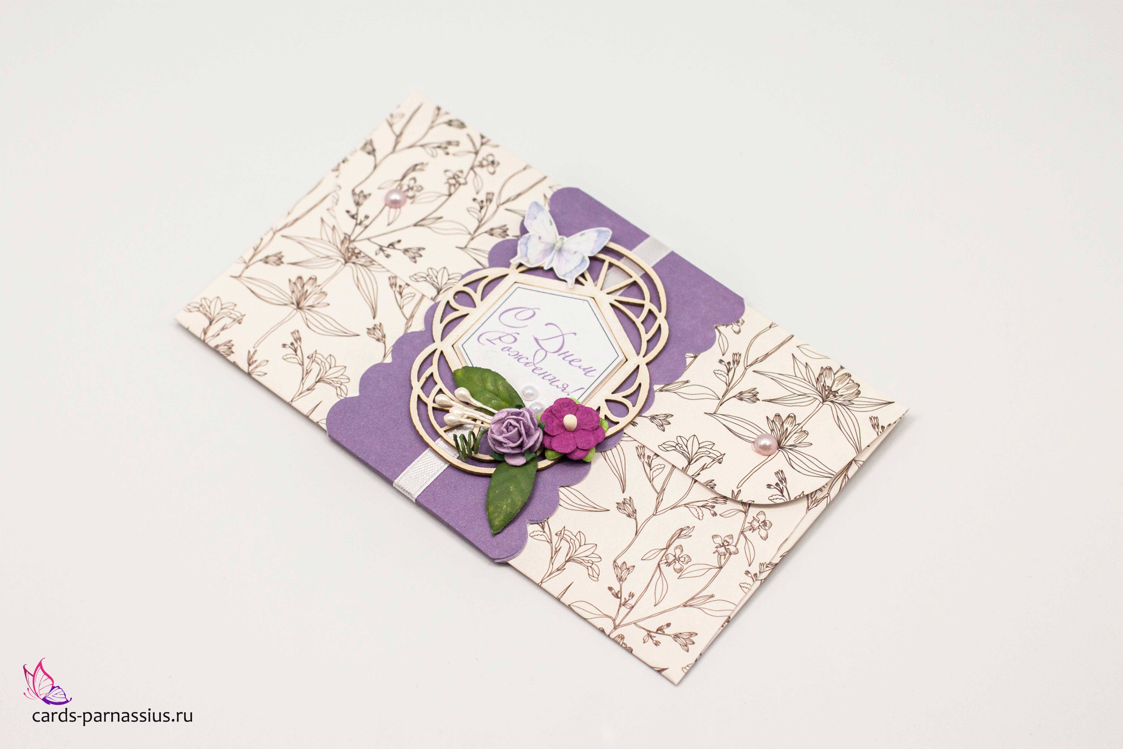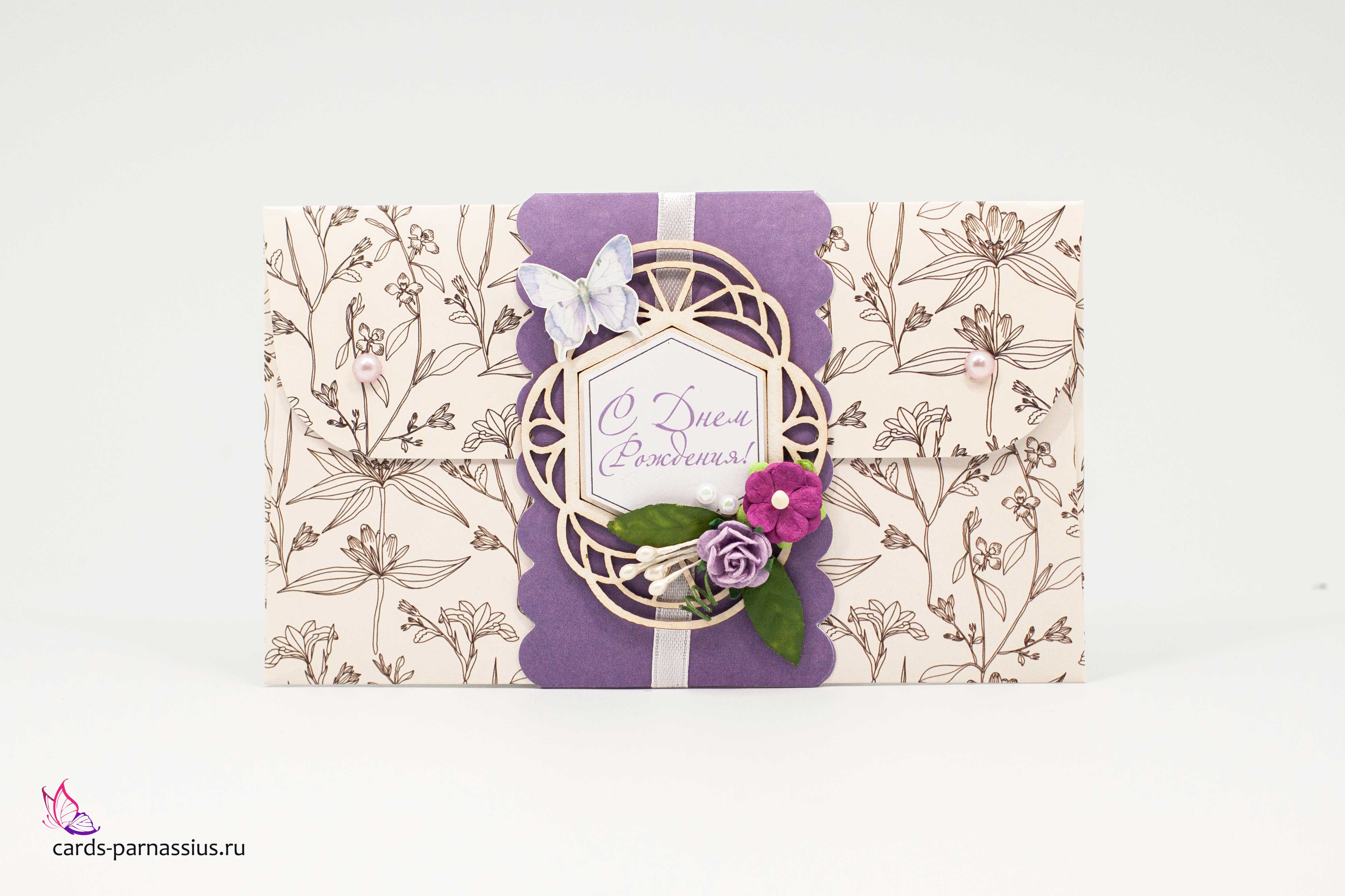 К486 Подарочный конверт ручной работы - Сиреневый сад