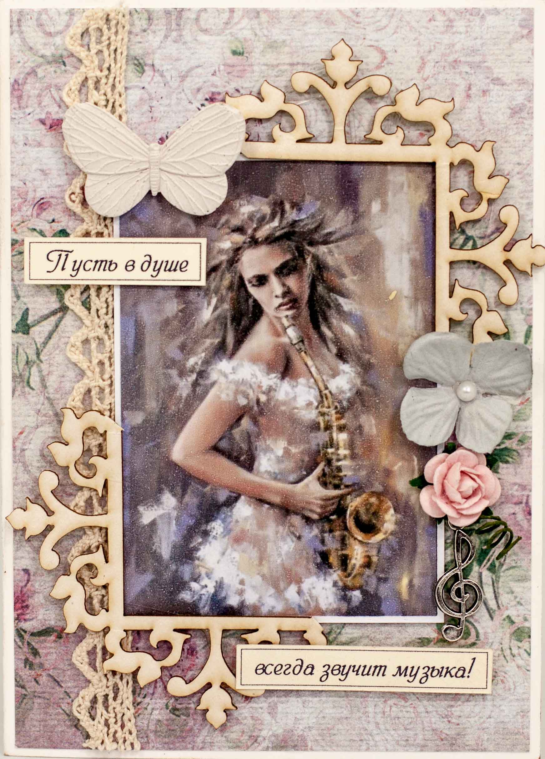 М216 Открытка ручной работы 10х15 см - Музыка в душе