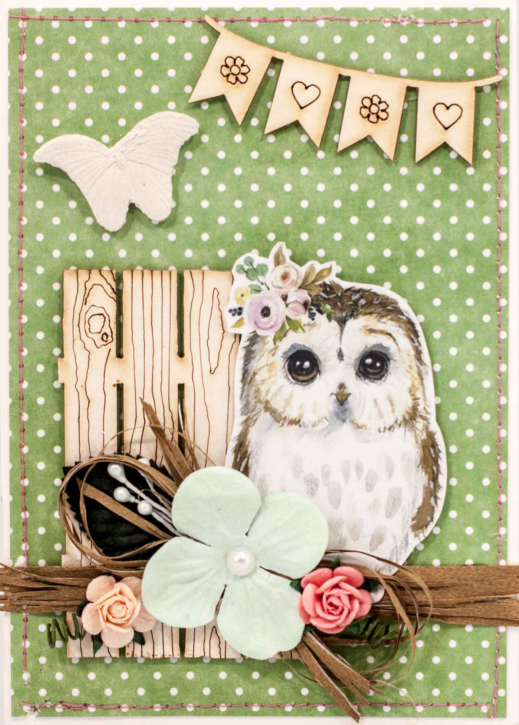 М235 Открытка ручной работы 10х15 см - Лесная сова