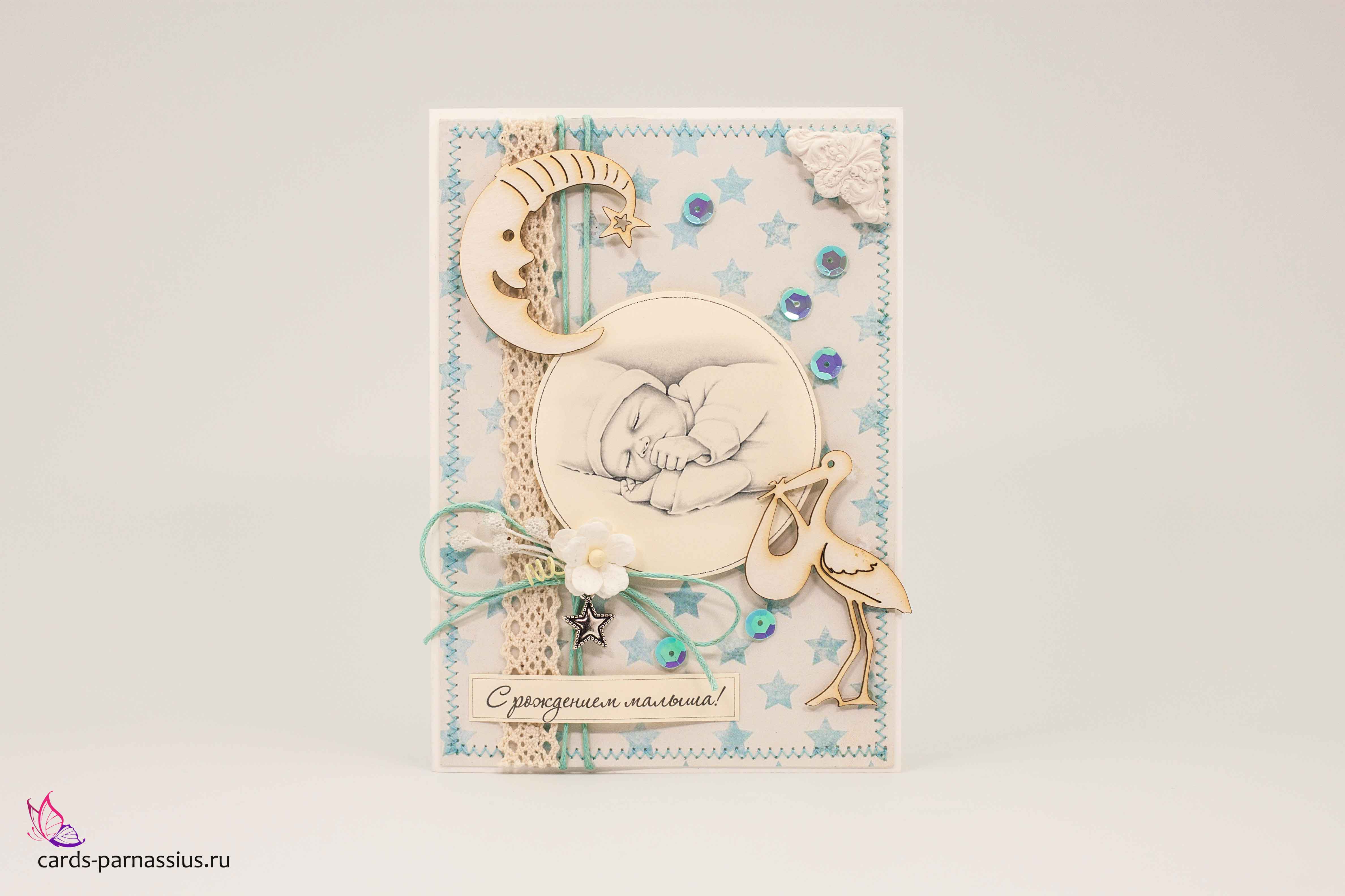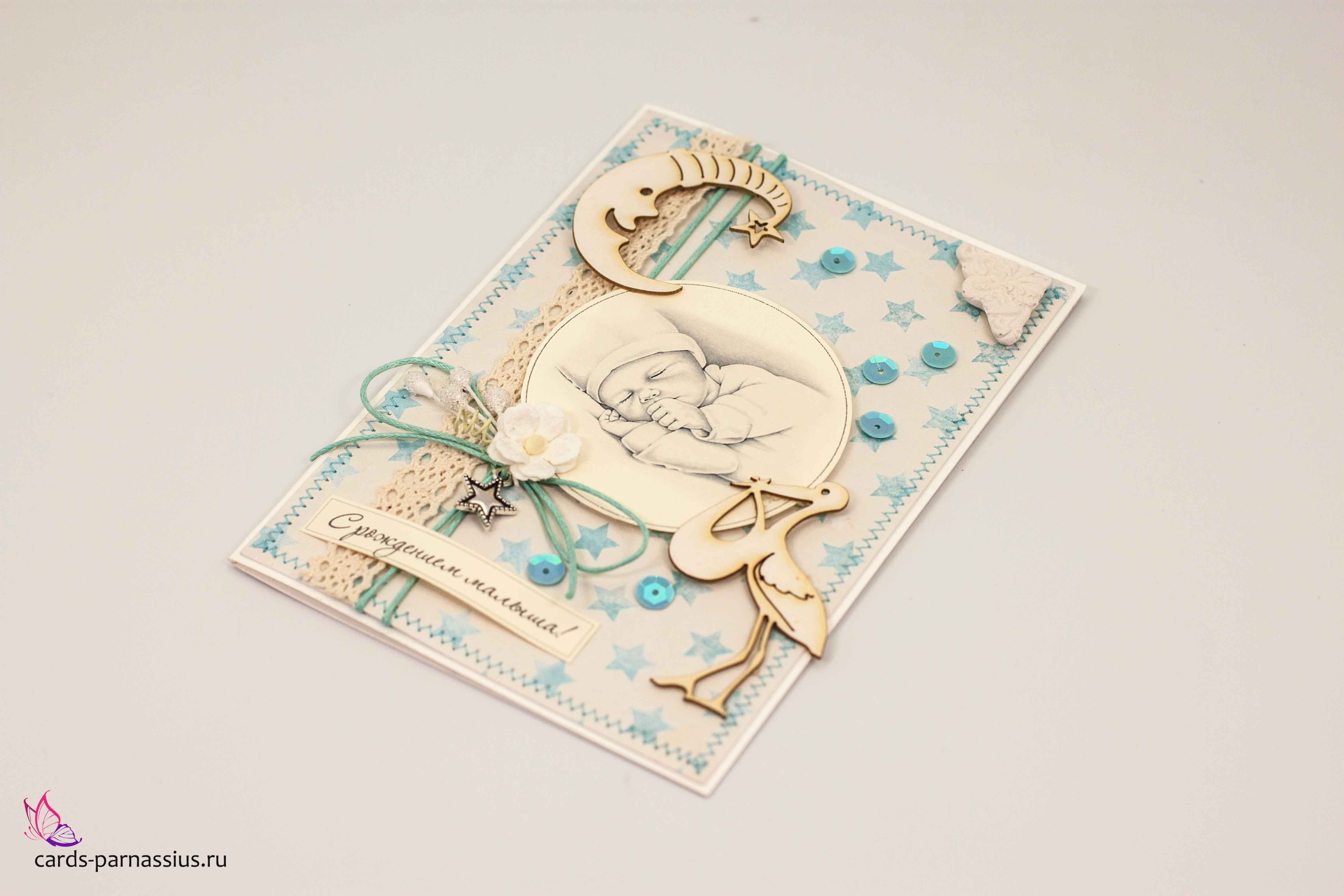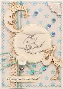 М252 Открытка ручной работы 10х15 см - Рождение мальчика