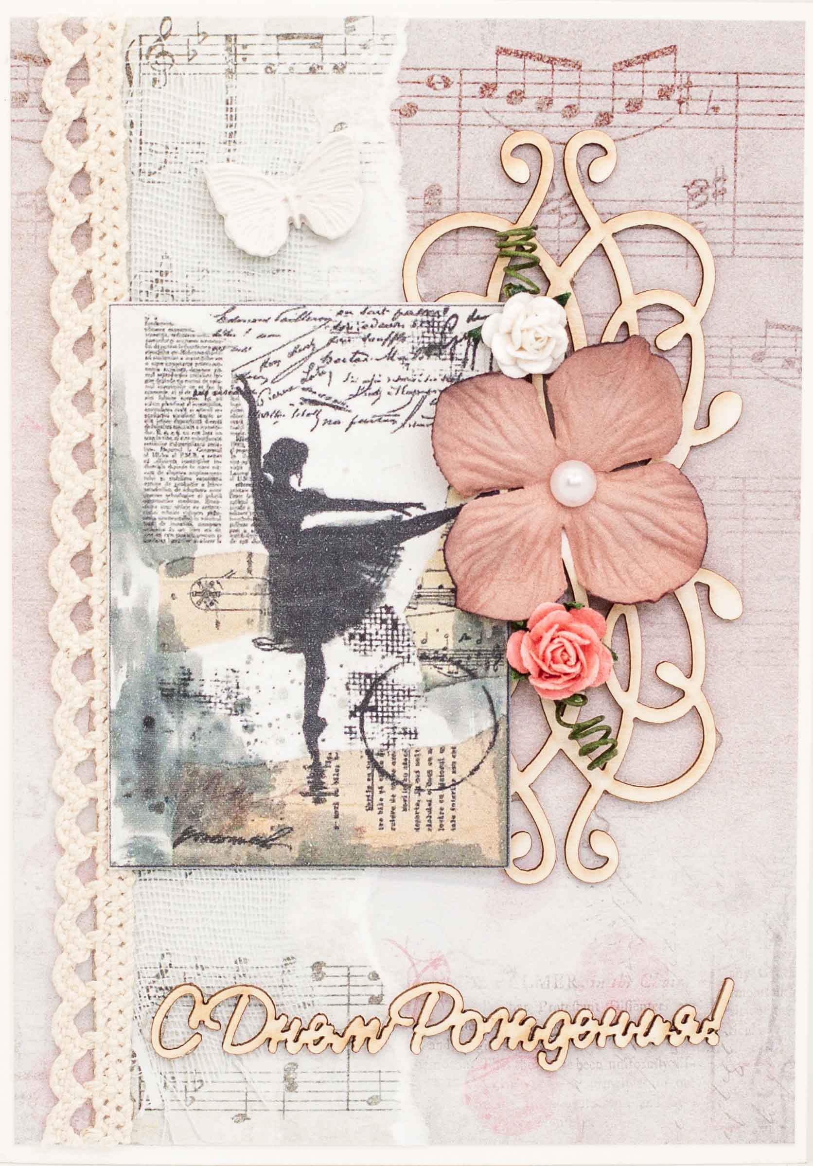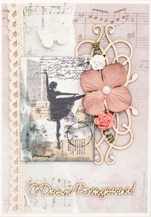 М313 Открытка ручной работы 10х15 см - Балерина