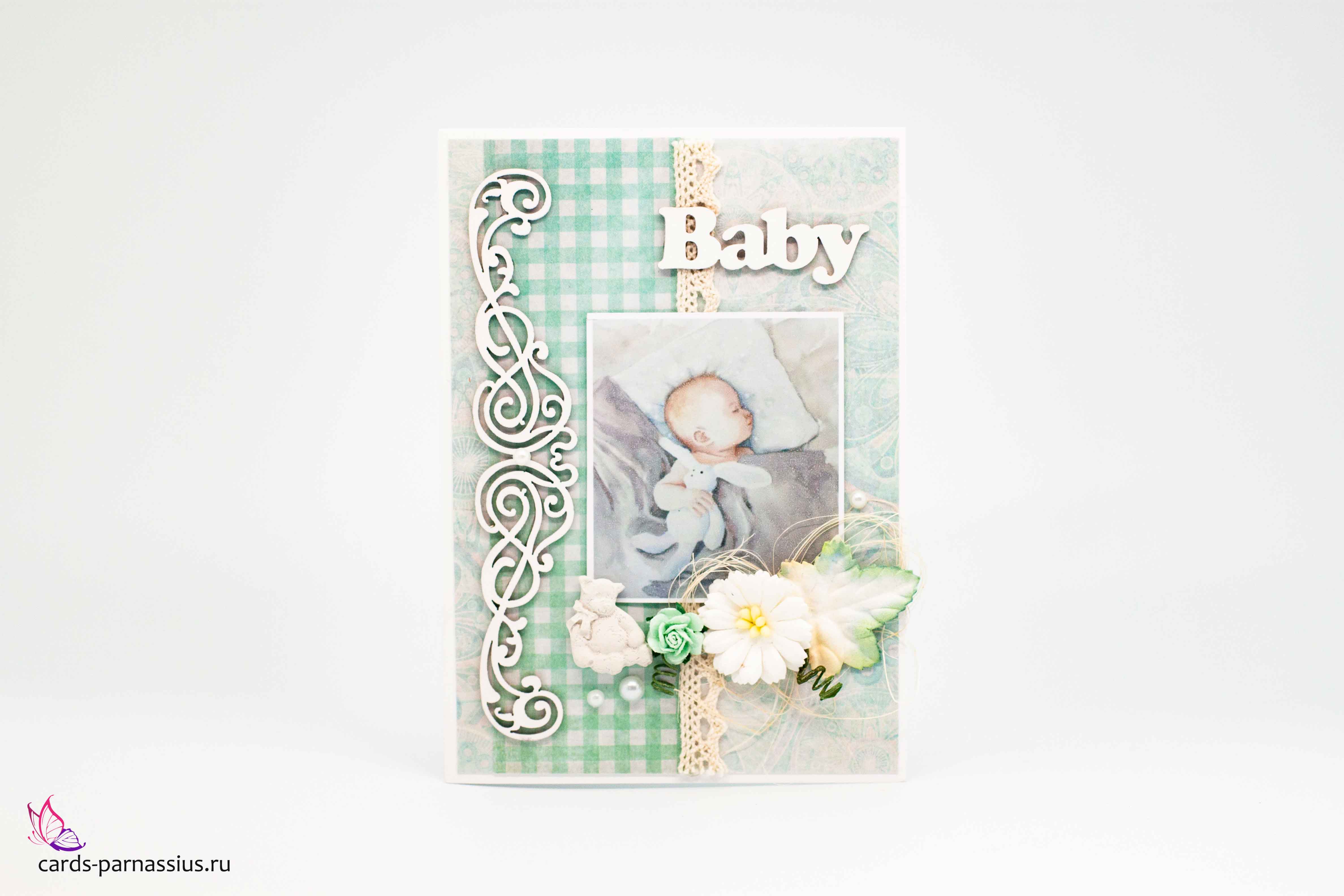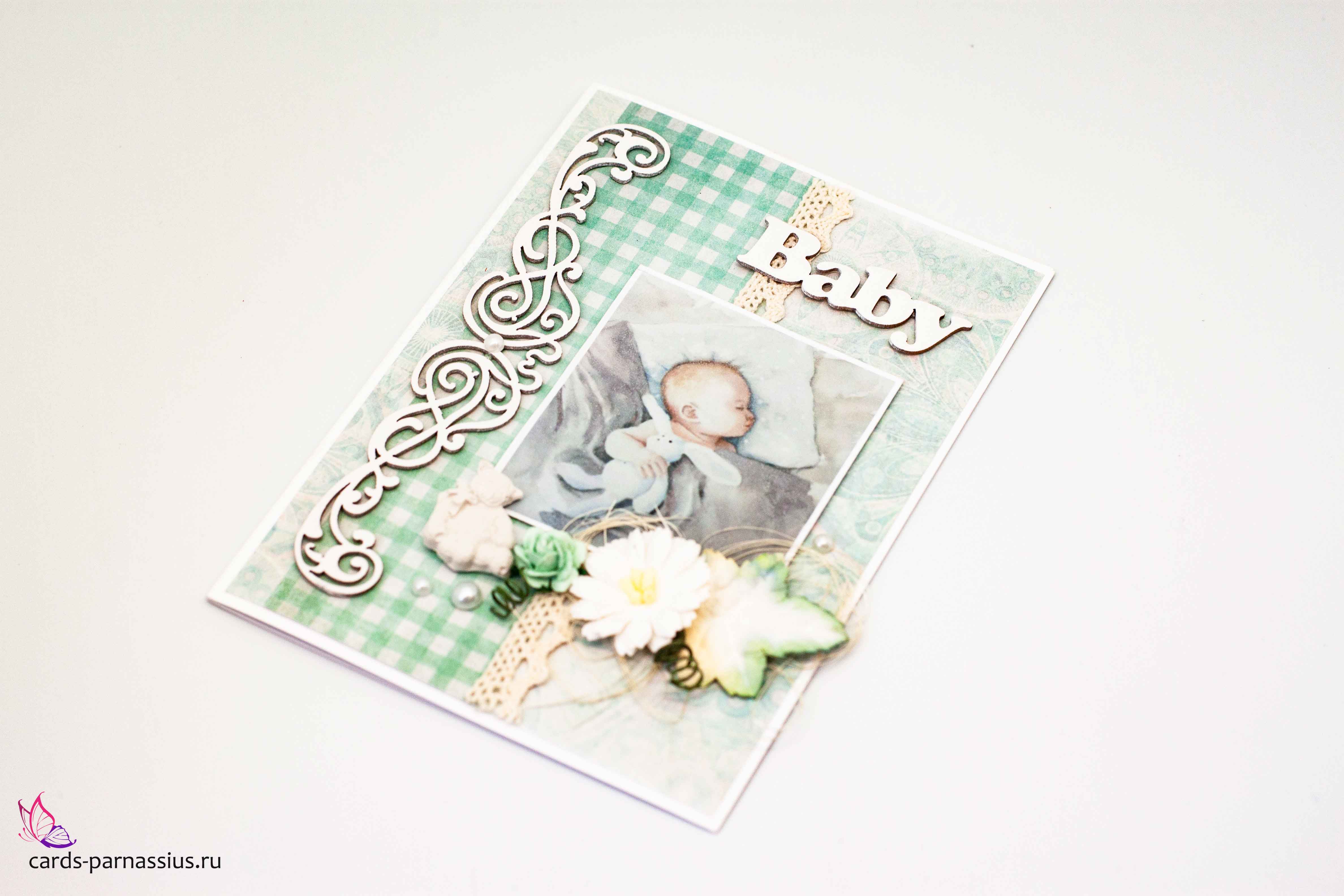 М327 Открытка ручной работы 10х15 см - Рождение малыша