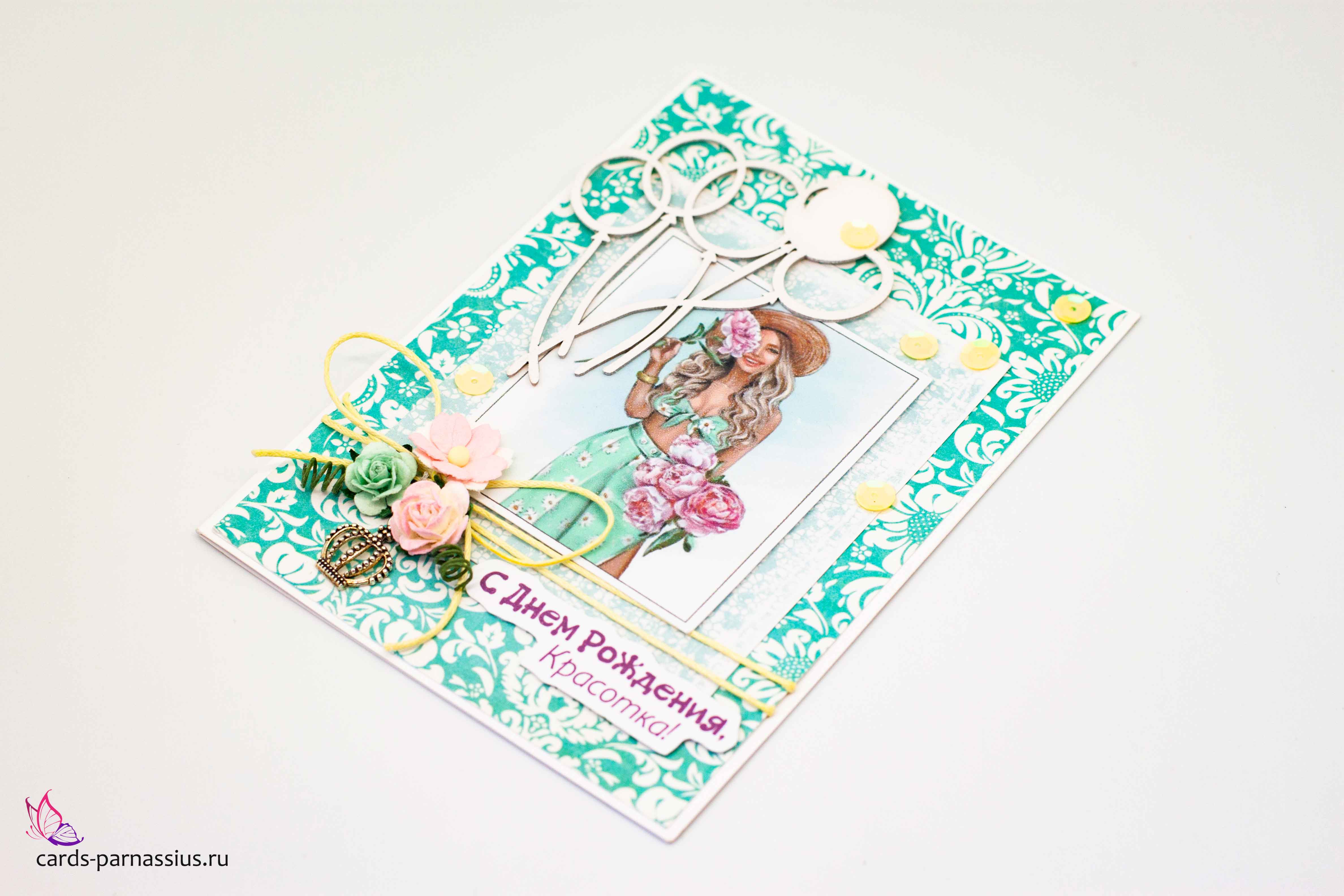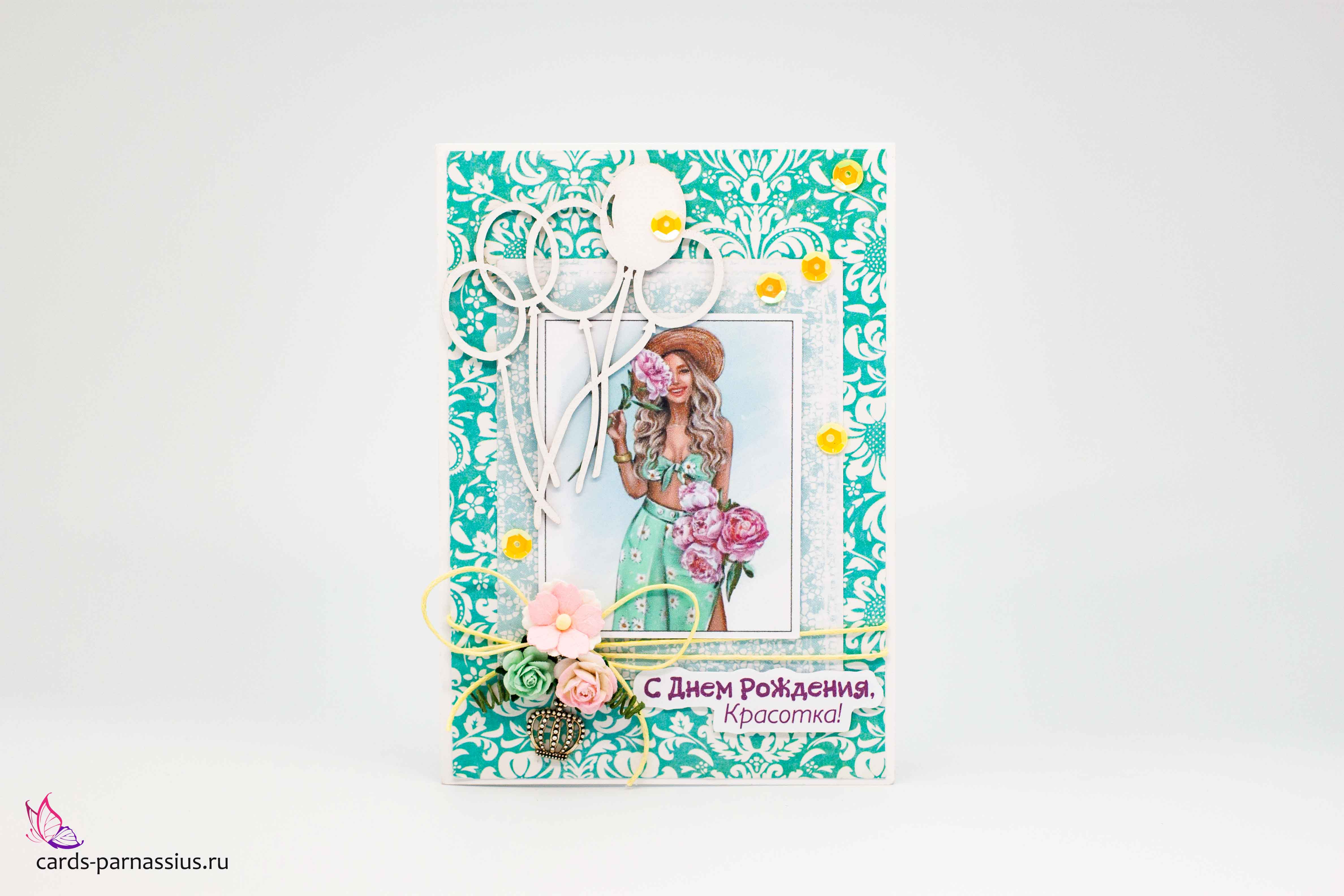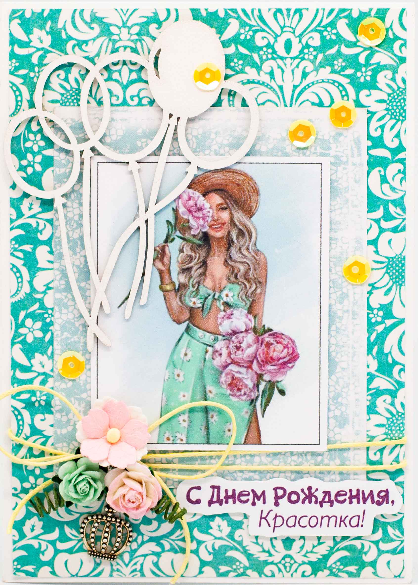 М328 Открытка ручной работы 10х15 см -С днем Рождения, красотка!