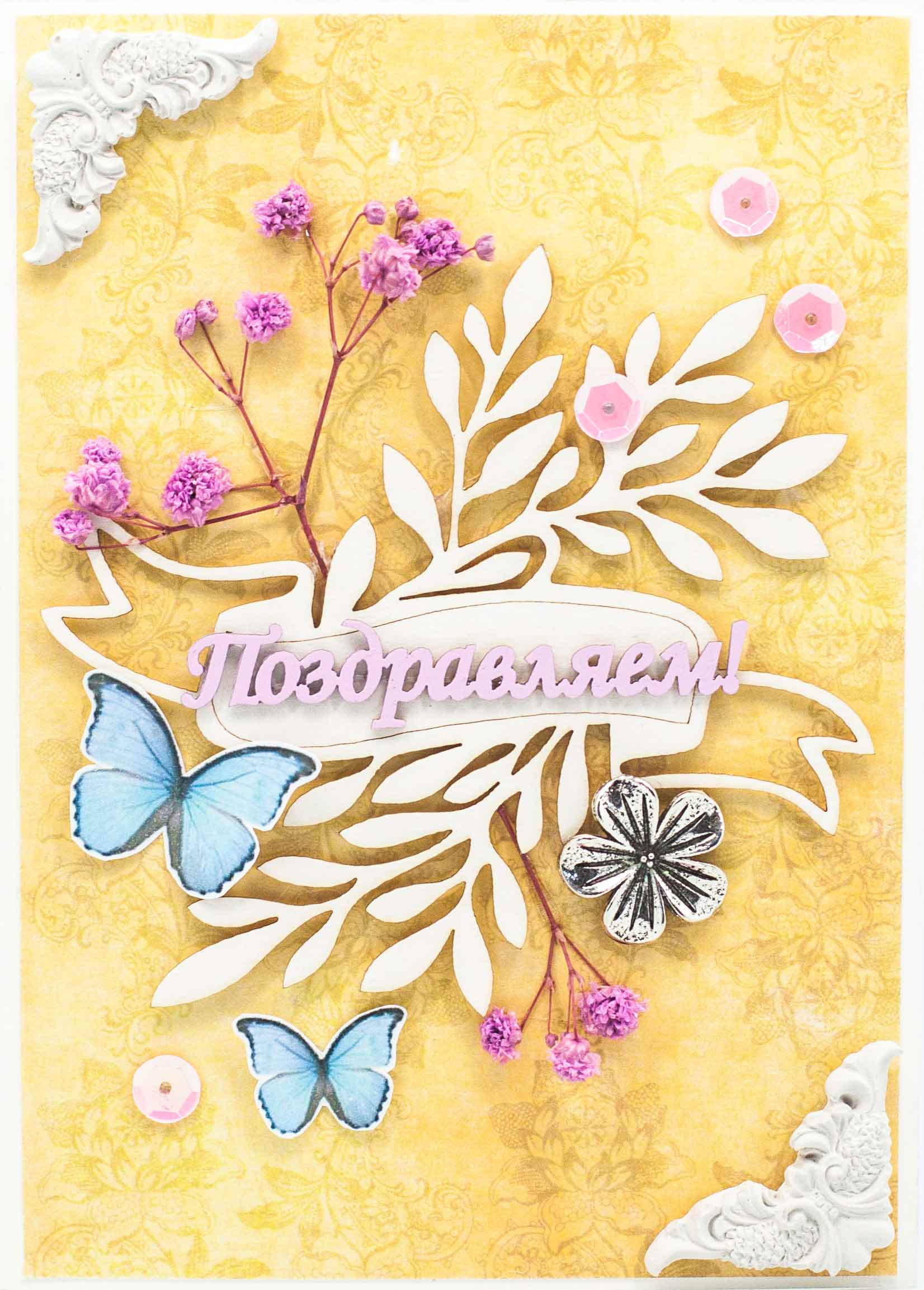 М359 Открытка ручной работы 10х15 см - Летние мотыльки