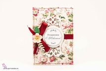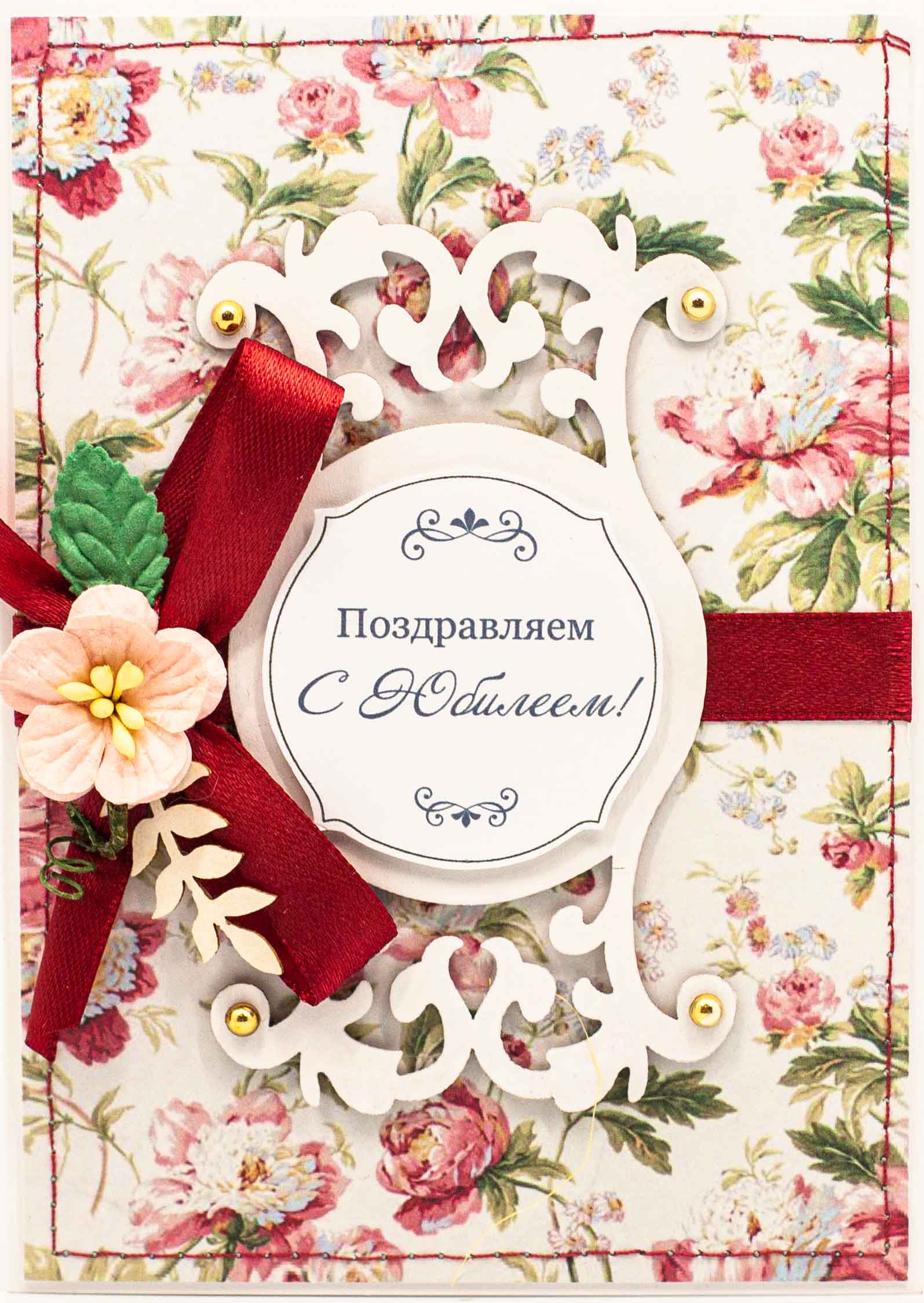М368 Открытка ручной работы 10х15 см - Цветы на Юбилей