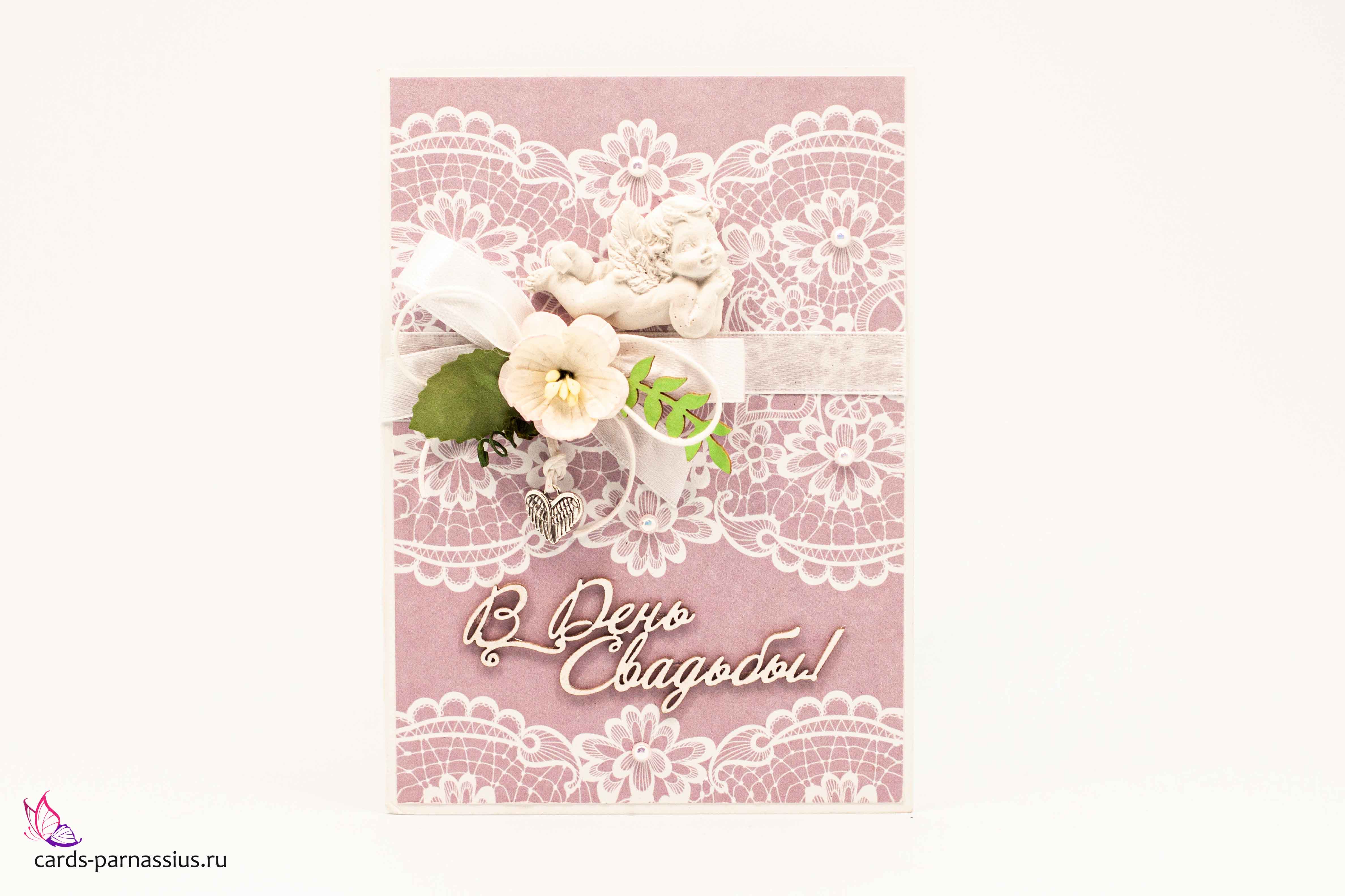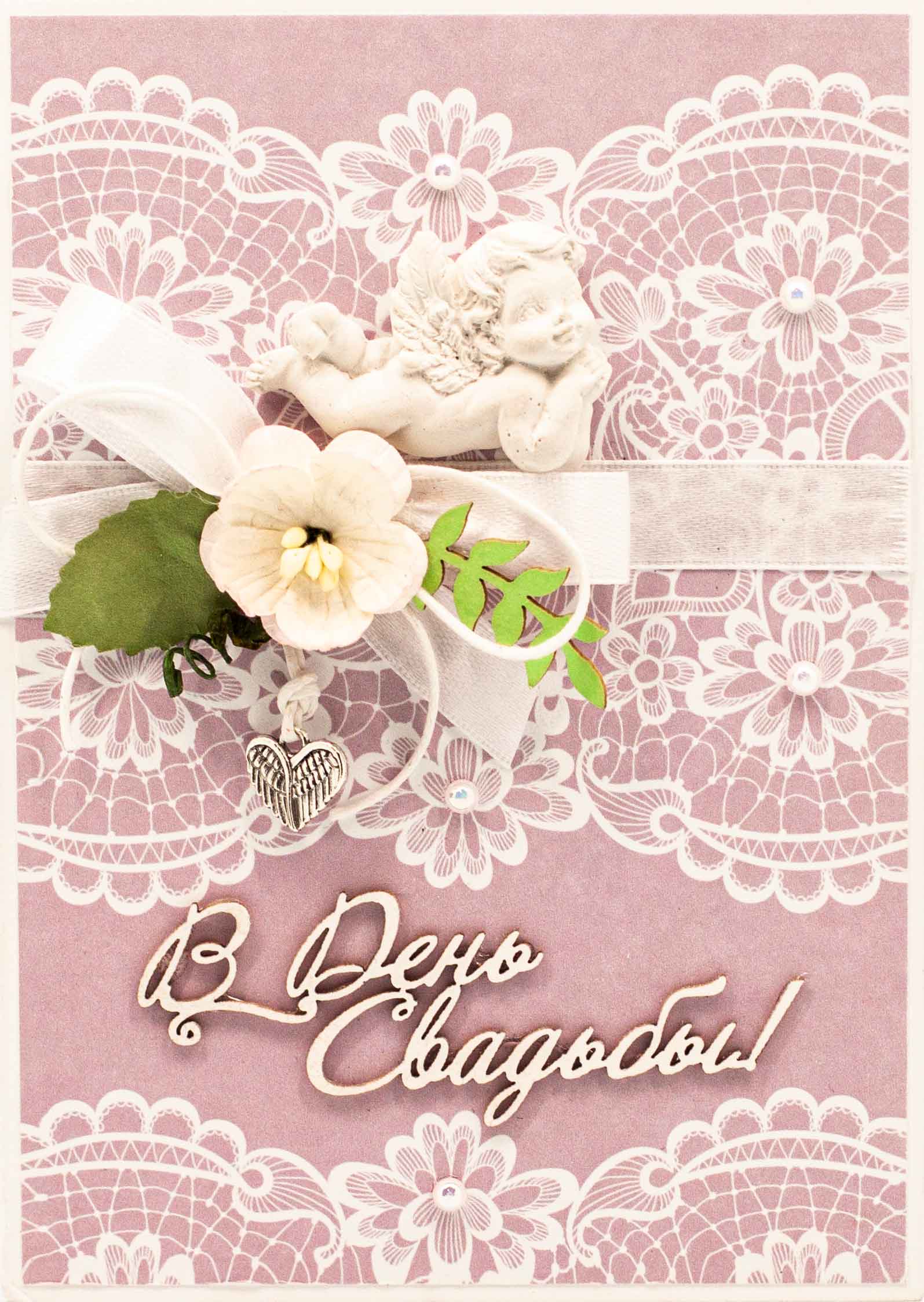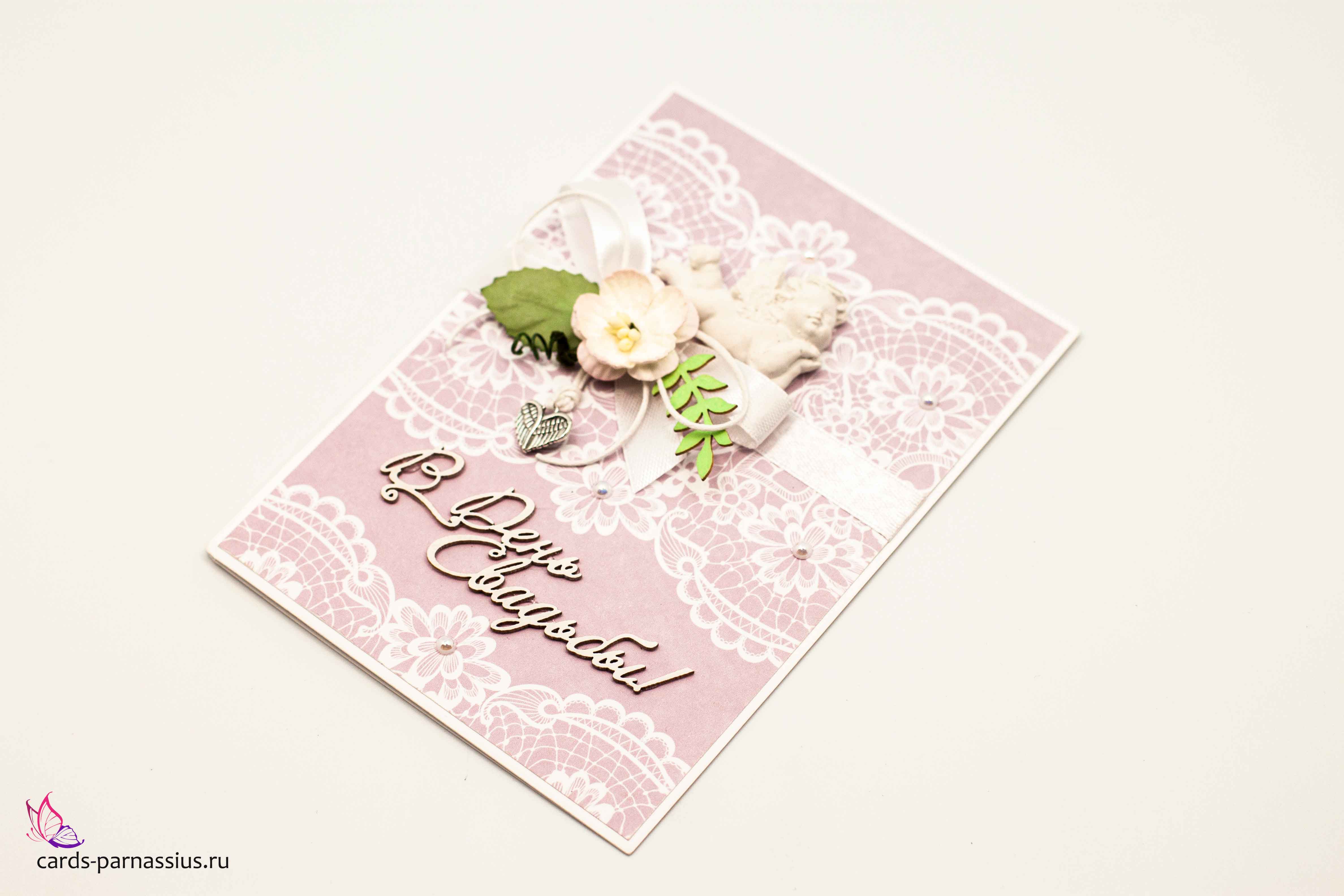 М372 Открытка ручной работы 10х15 см - Свадебное кружево