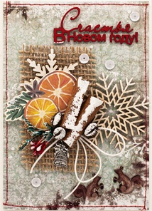 М397 Открытка ручной работы 10х15 см - Новогодний сюрприз