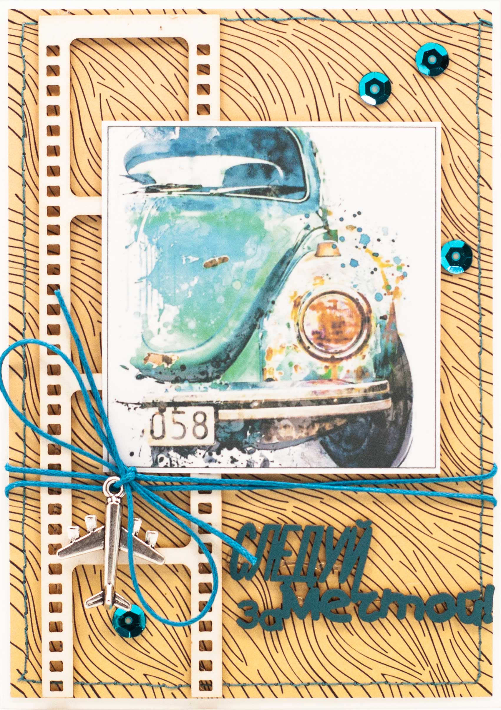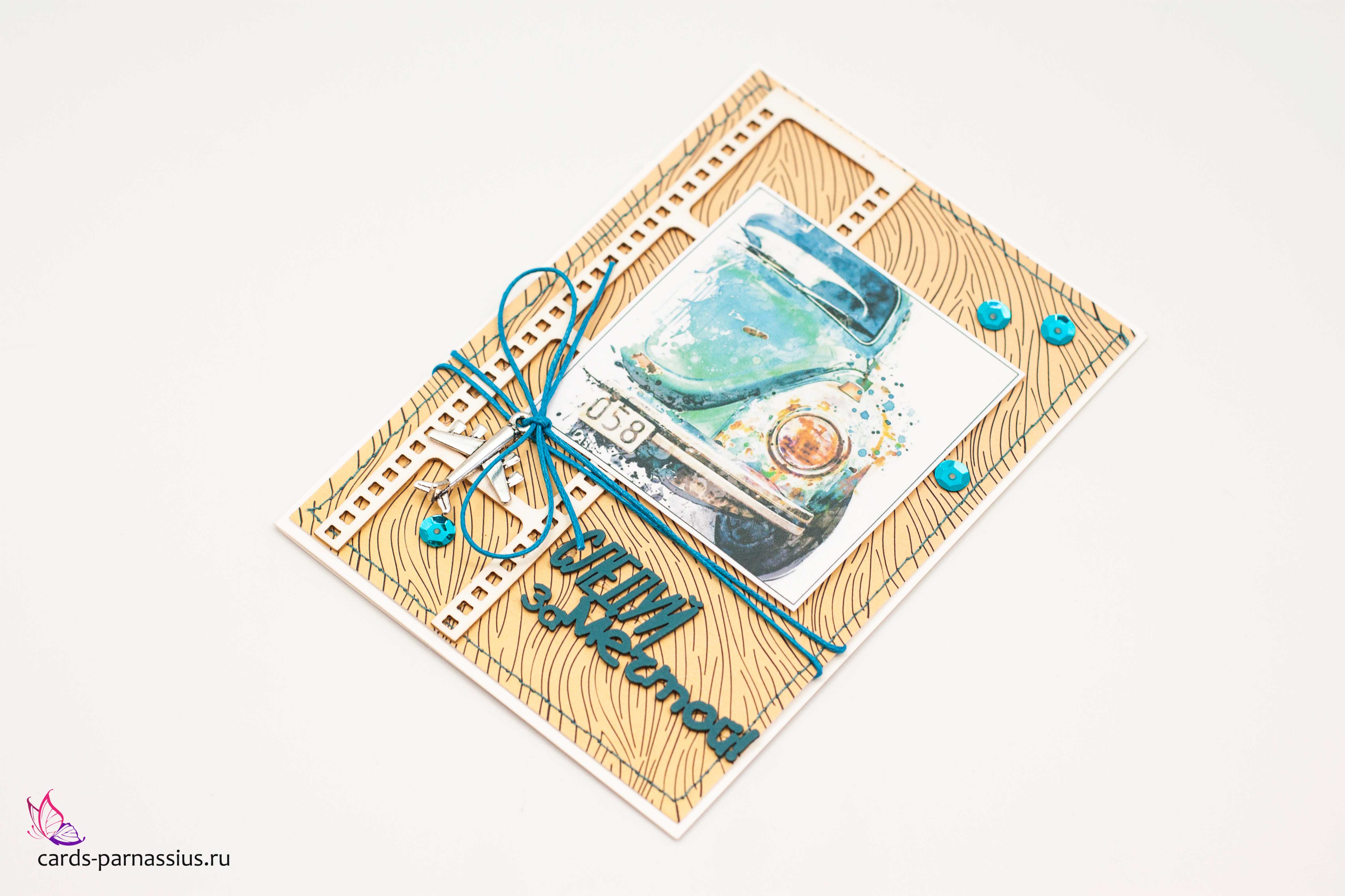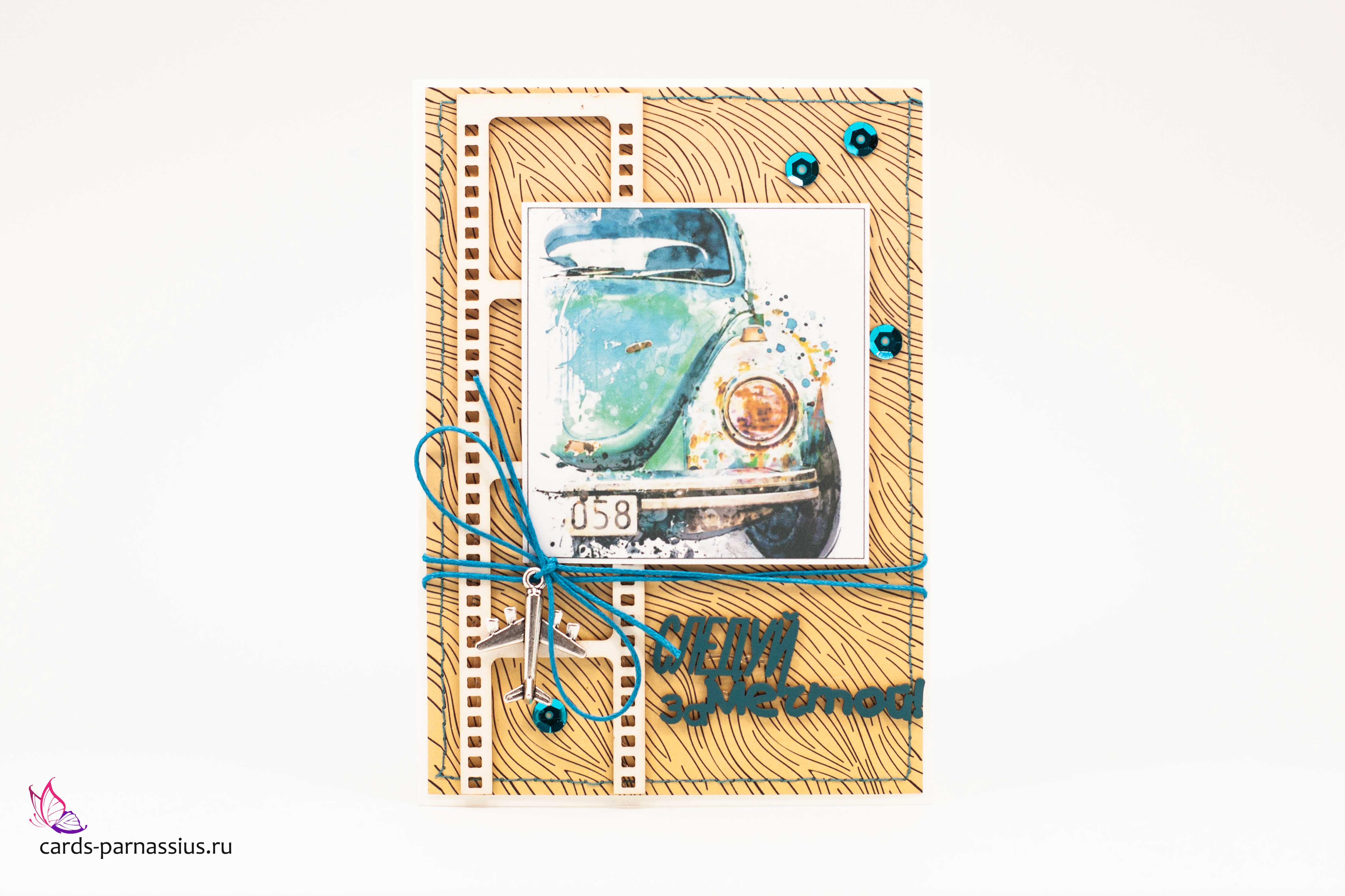 М403 Открытка ручной работы 10х15 см - Мини-купер