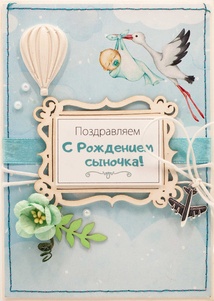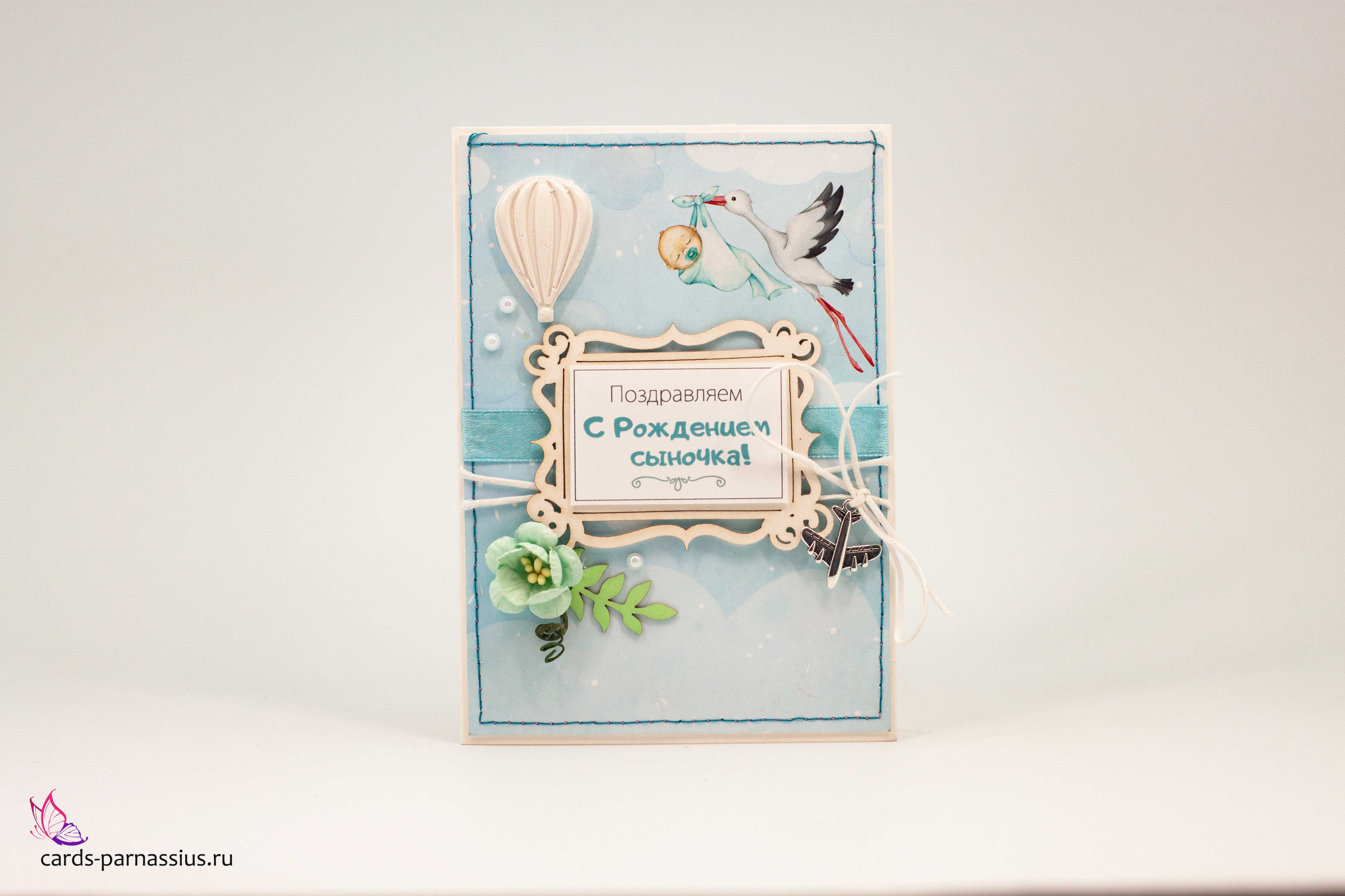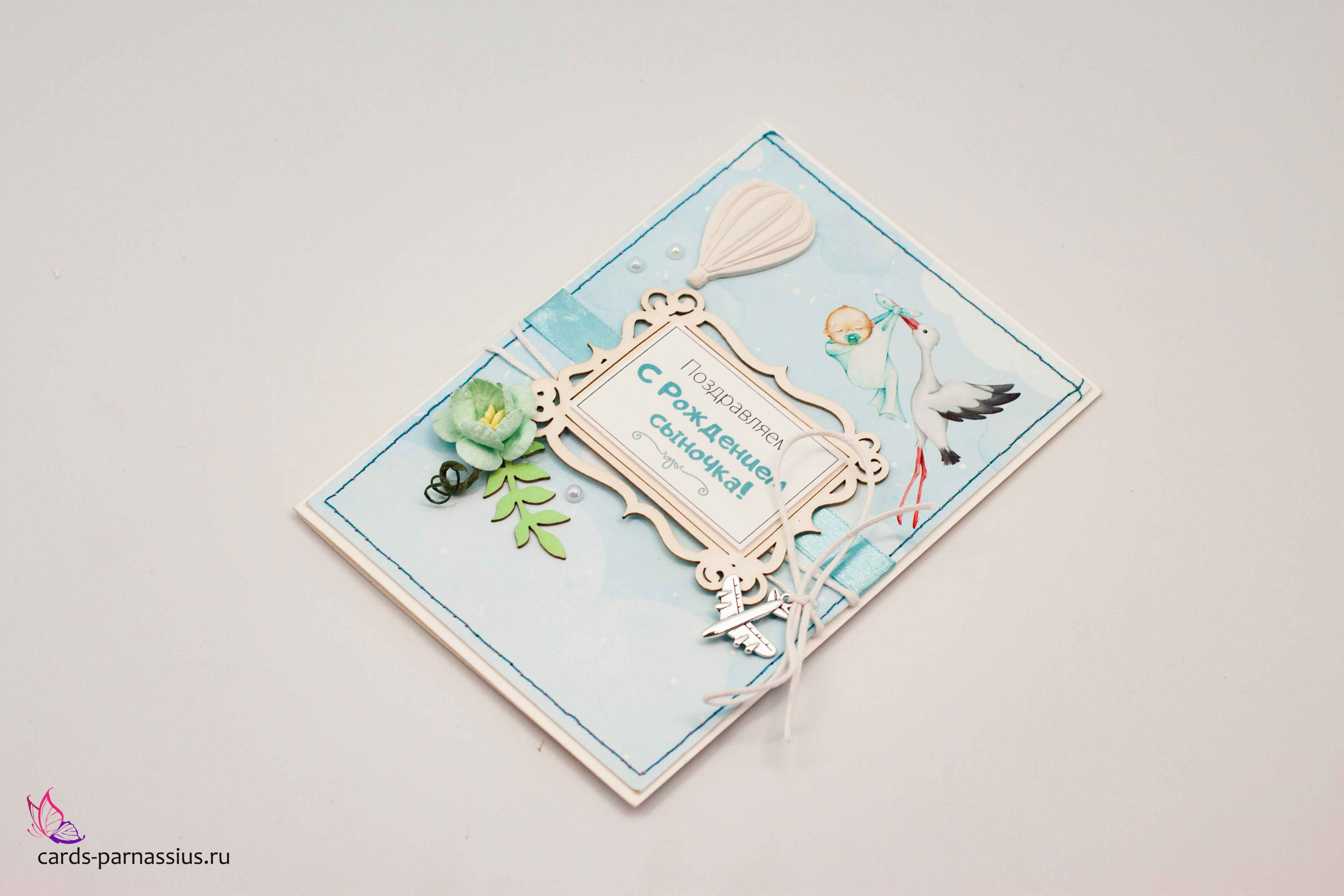 М434 Открытка ручной работы 10х15 см - Аист