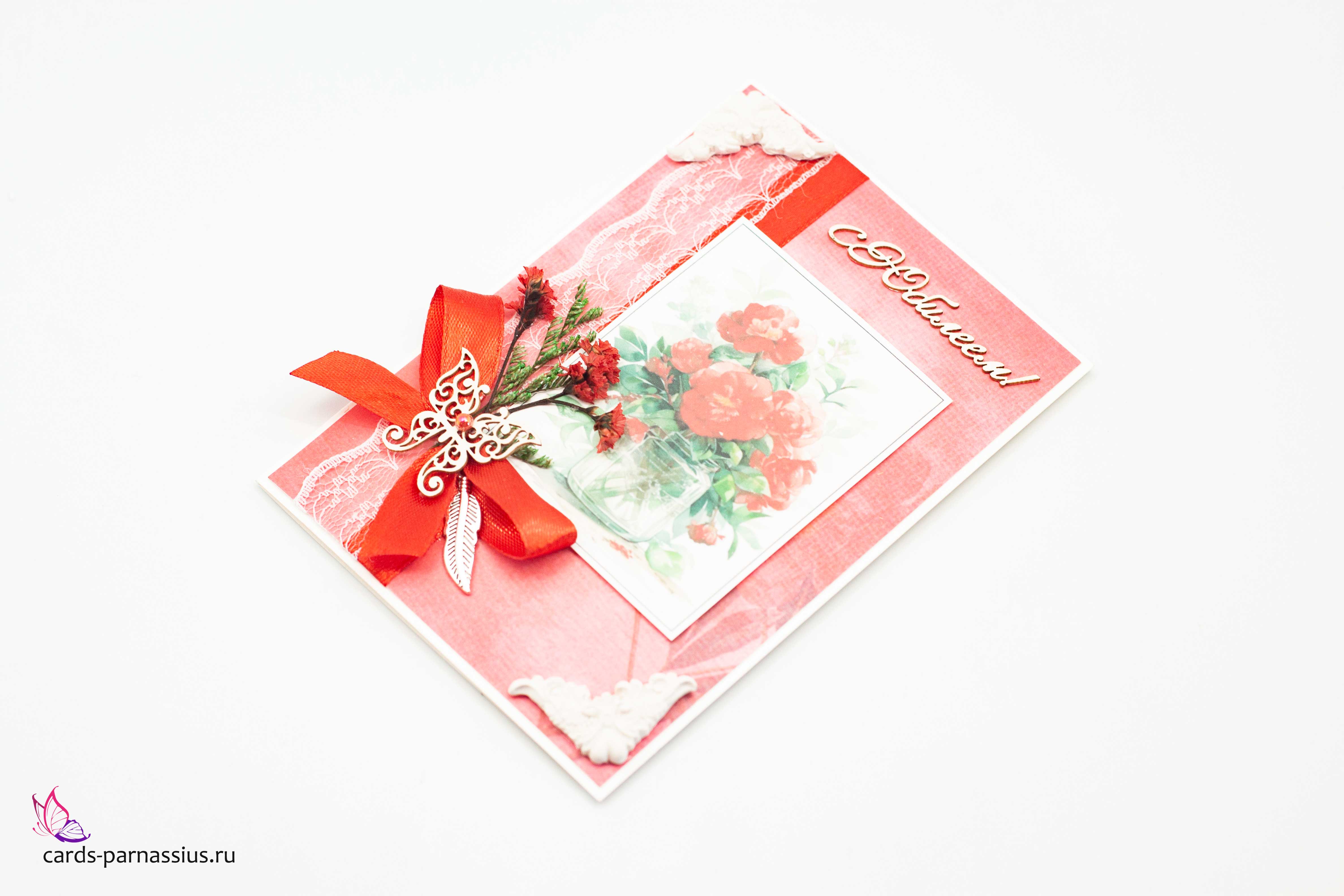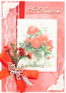 М438 Открытка ручной работы 10х15 см - Красный бархат