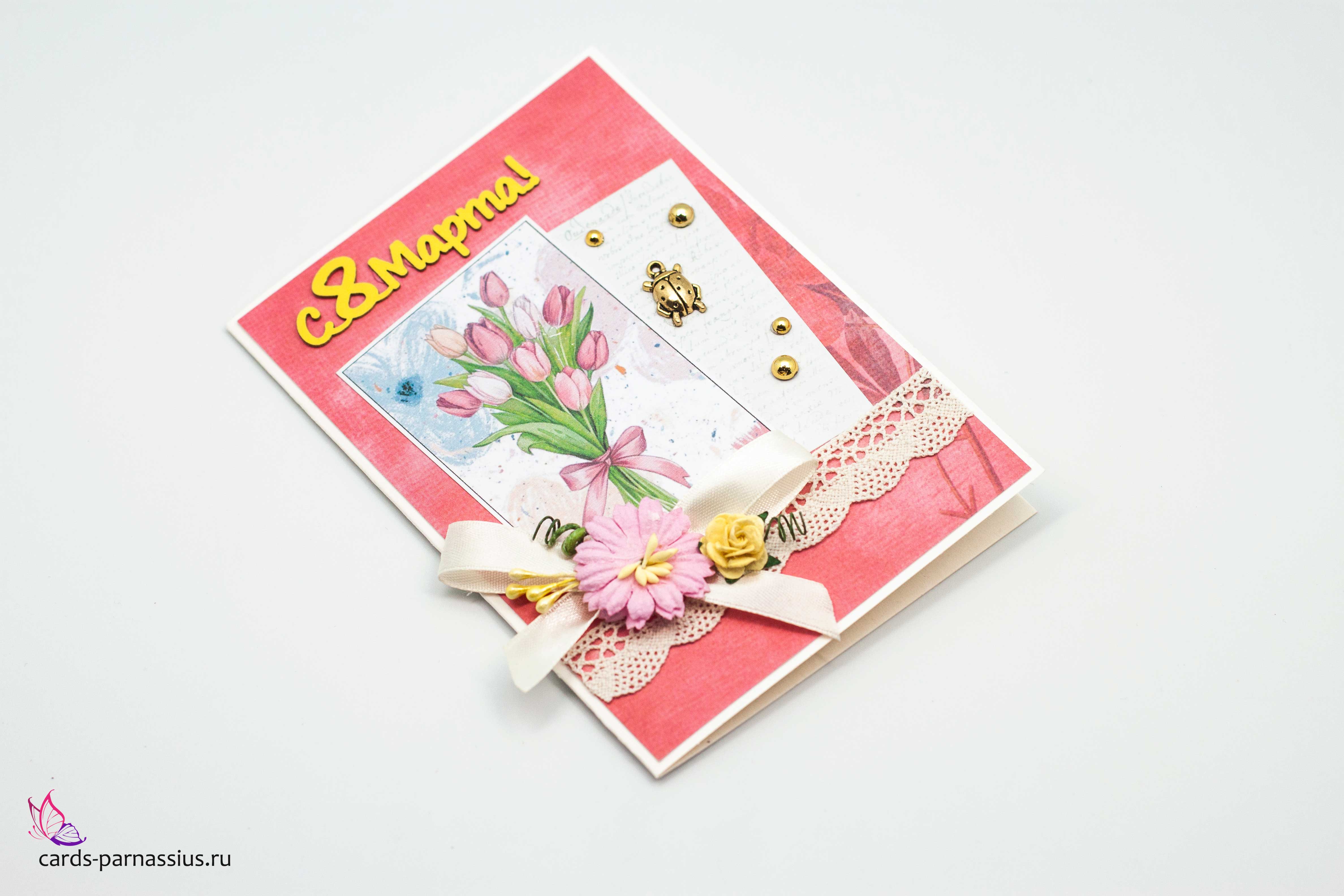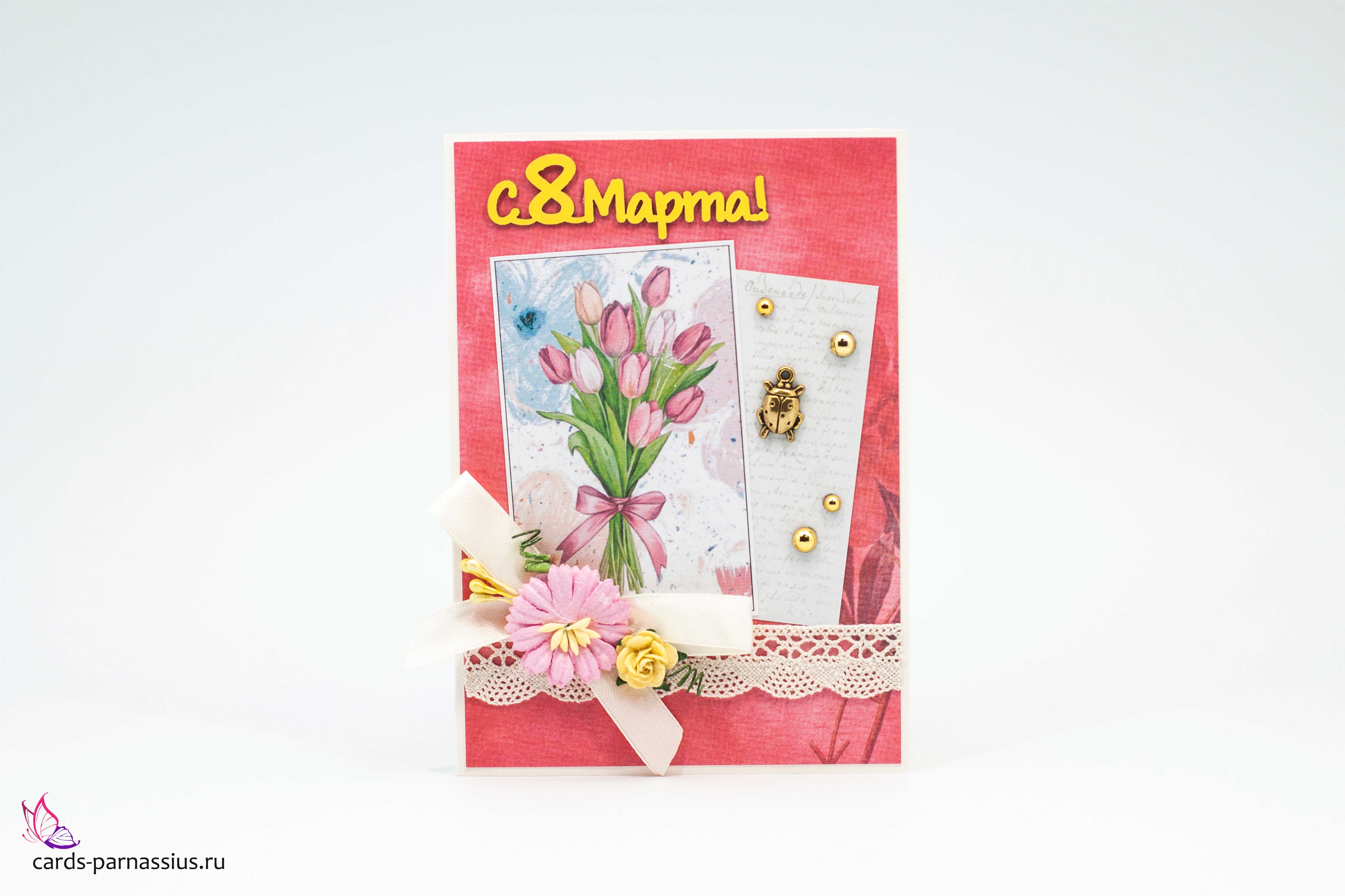 М466 Открытка ручной работы 10х15 см - Тюльпаны