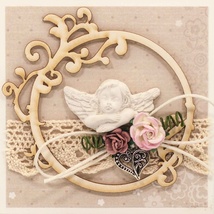 Т052 Открытка ручной работы 8х8 см (Букетная) - Ангелок