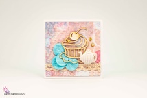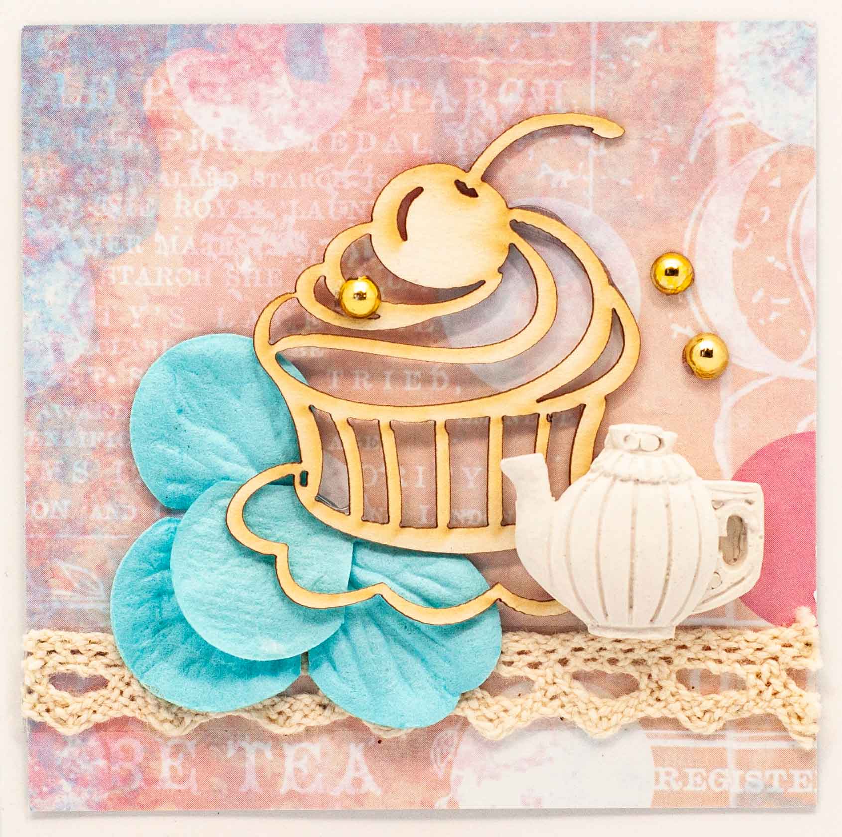 Т069 Открытка ручной работы 8х8 см (Букетная) - Чаепитие