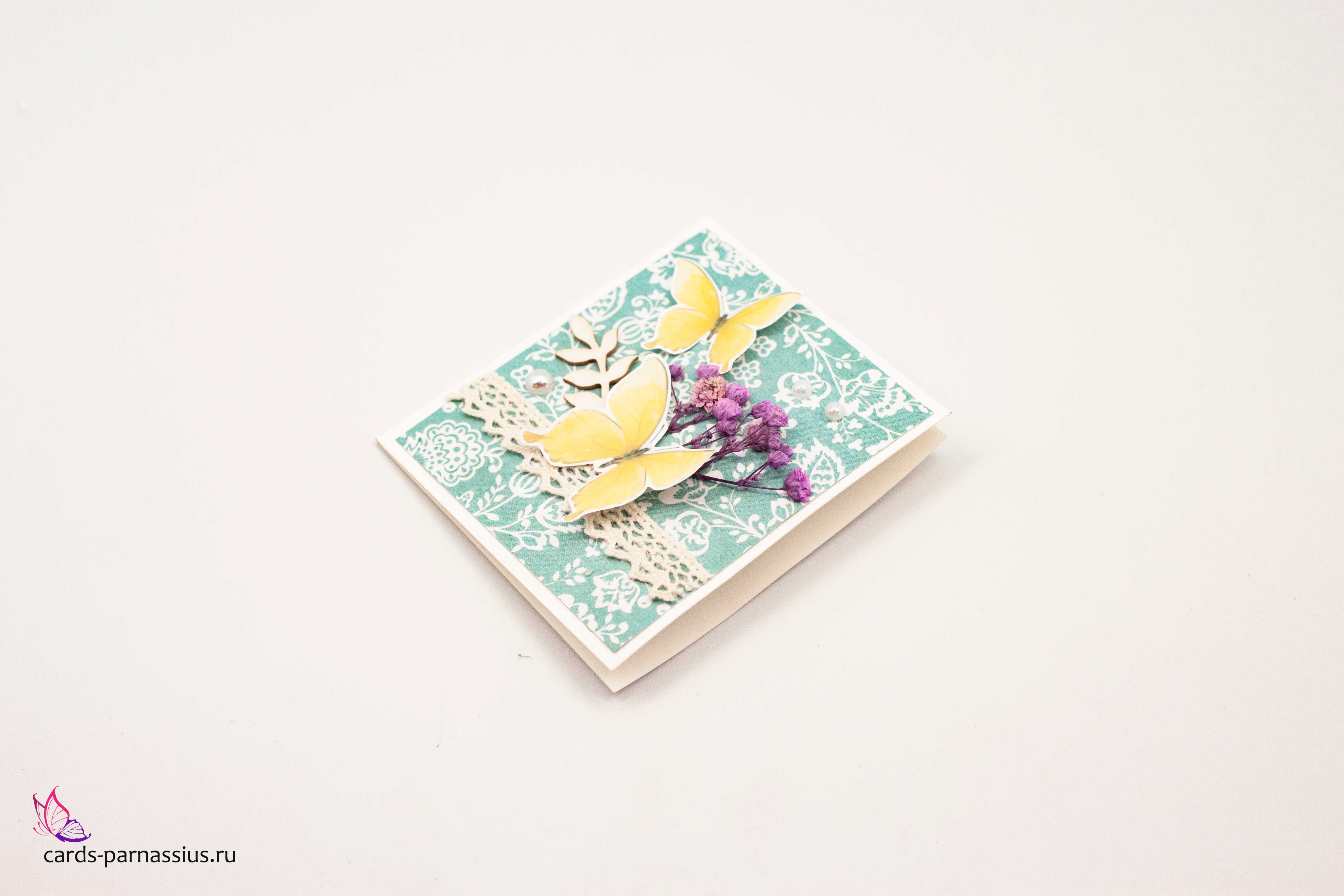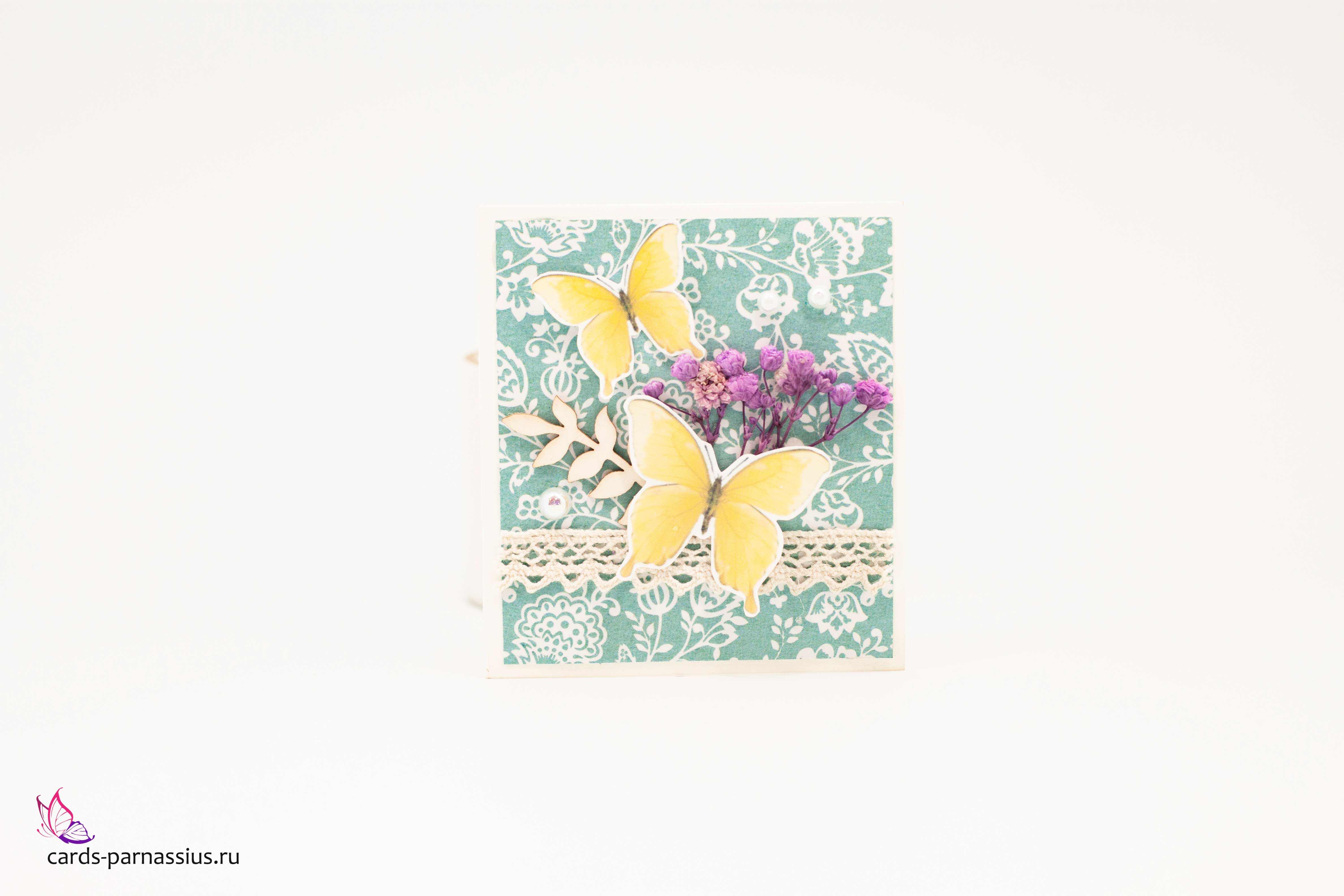 Т077 Открытка ручной работы 8х8 см (Букетная) - Мотыльки