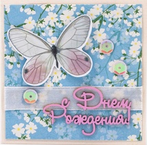 Т080 Открытка ручной работы 8х8 см (Букетная) - Сады сакуры