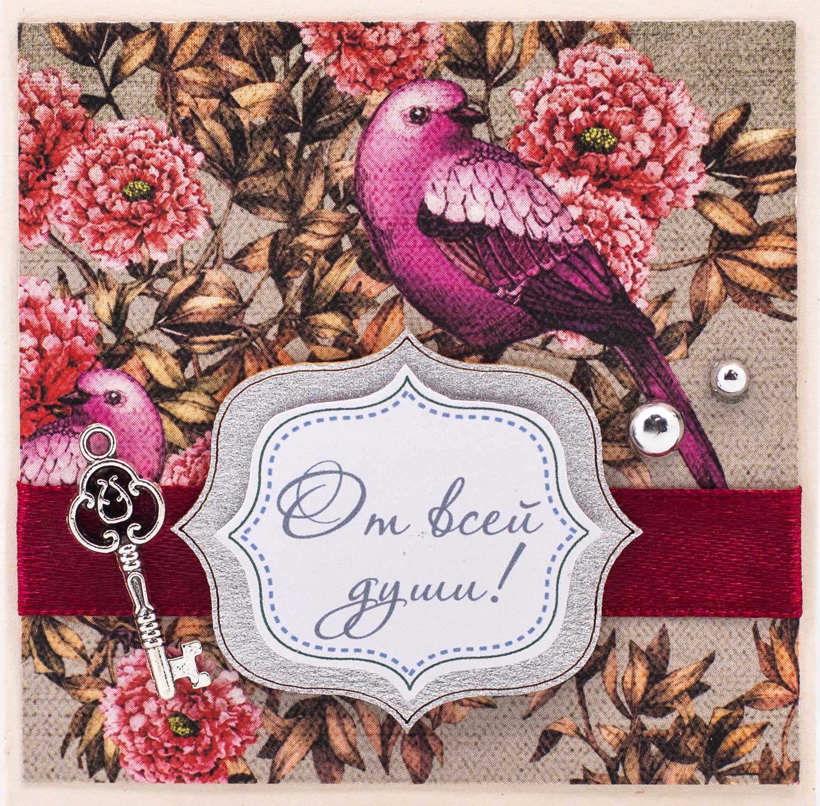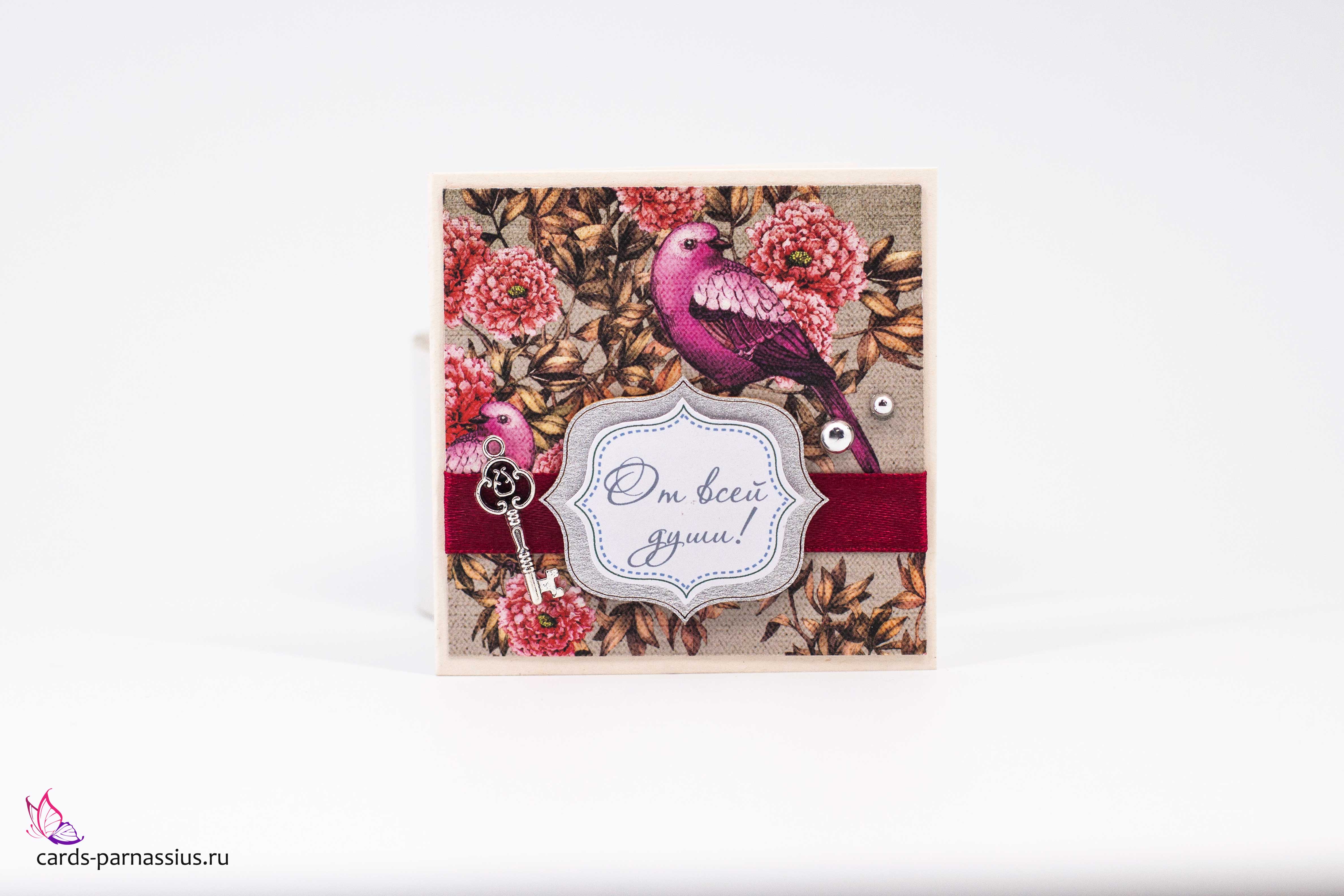 Т082 Открытка ручной работы 8х8 см (Букетная) - Райская птица