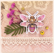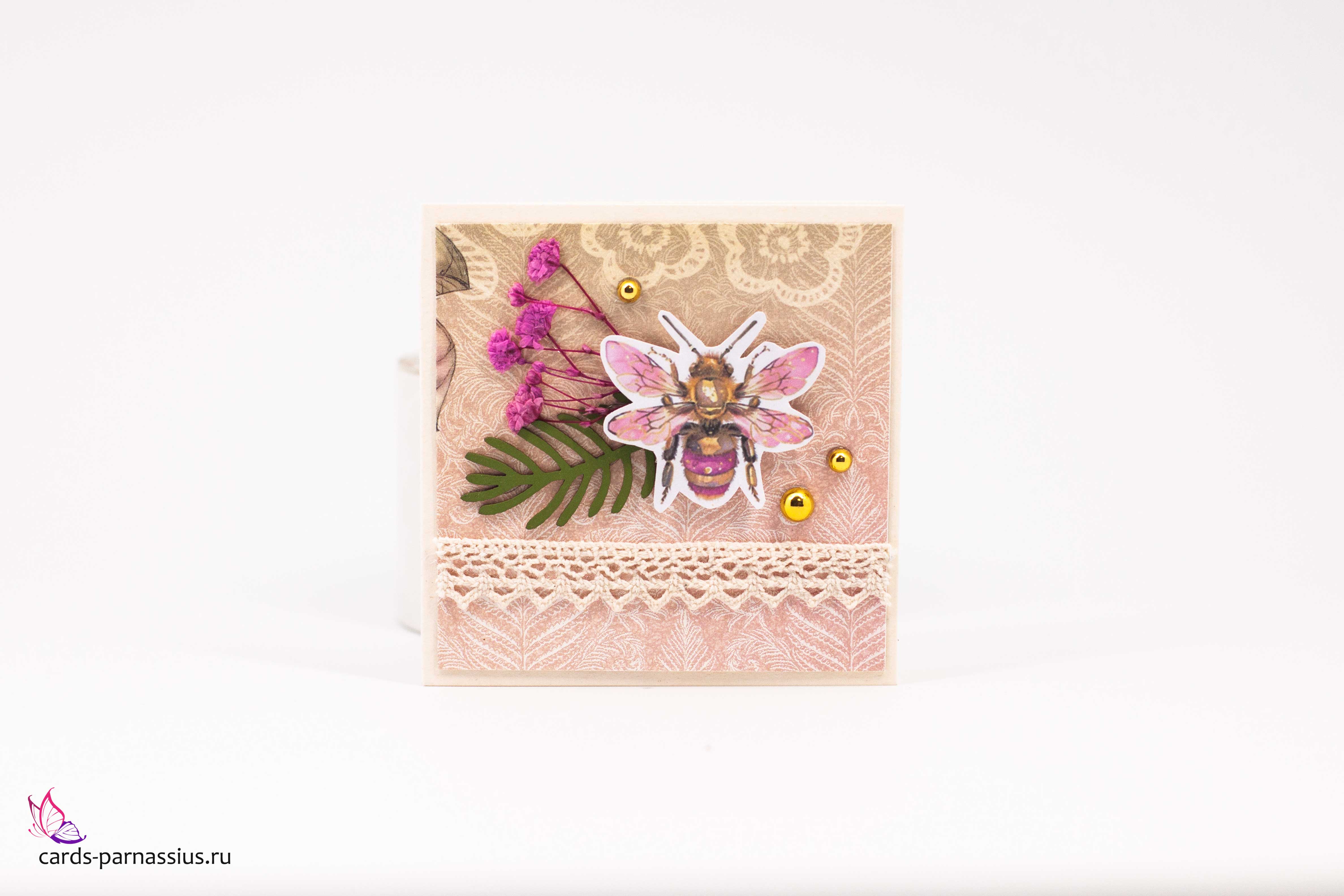 Т086 Открытка ручной работы 8х8 см (Букетная) - Шмель